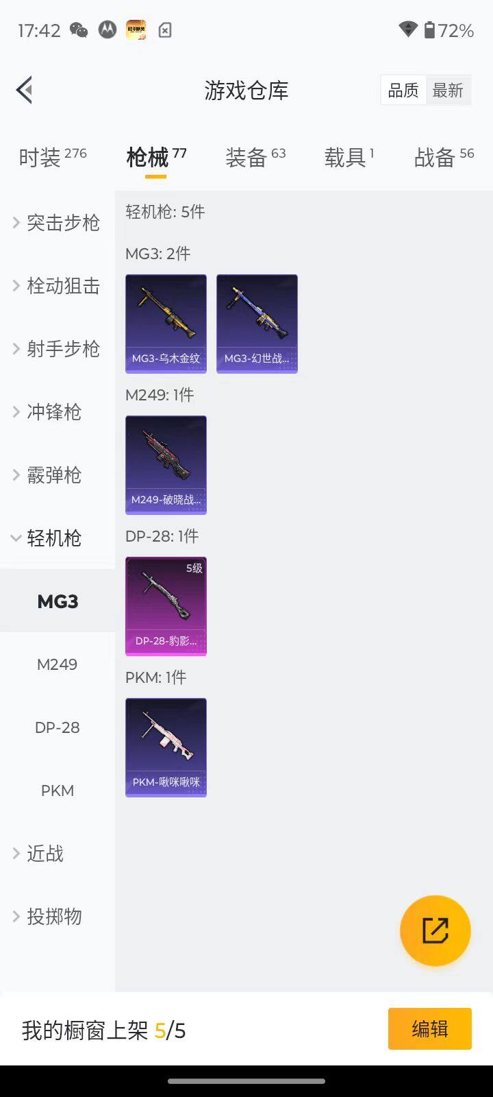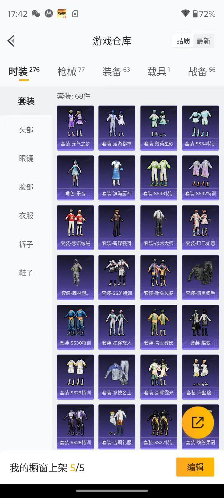 68套装/枪械2/装备63/载具1/战备56/热力值23896/五级Kar98