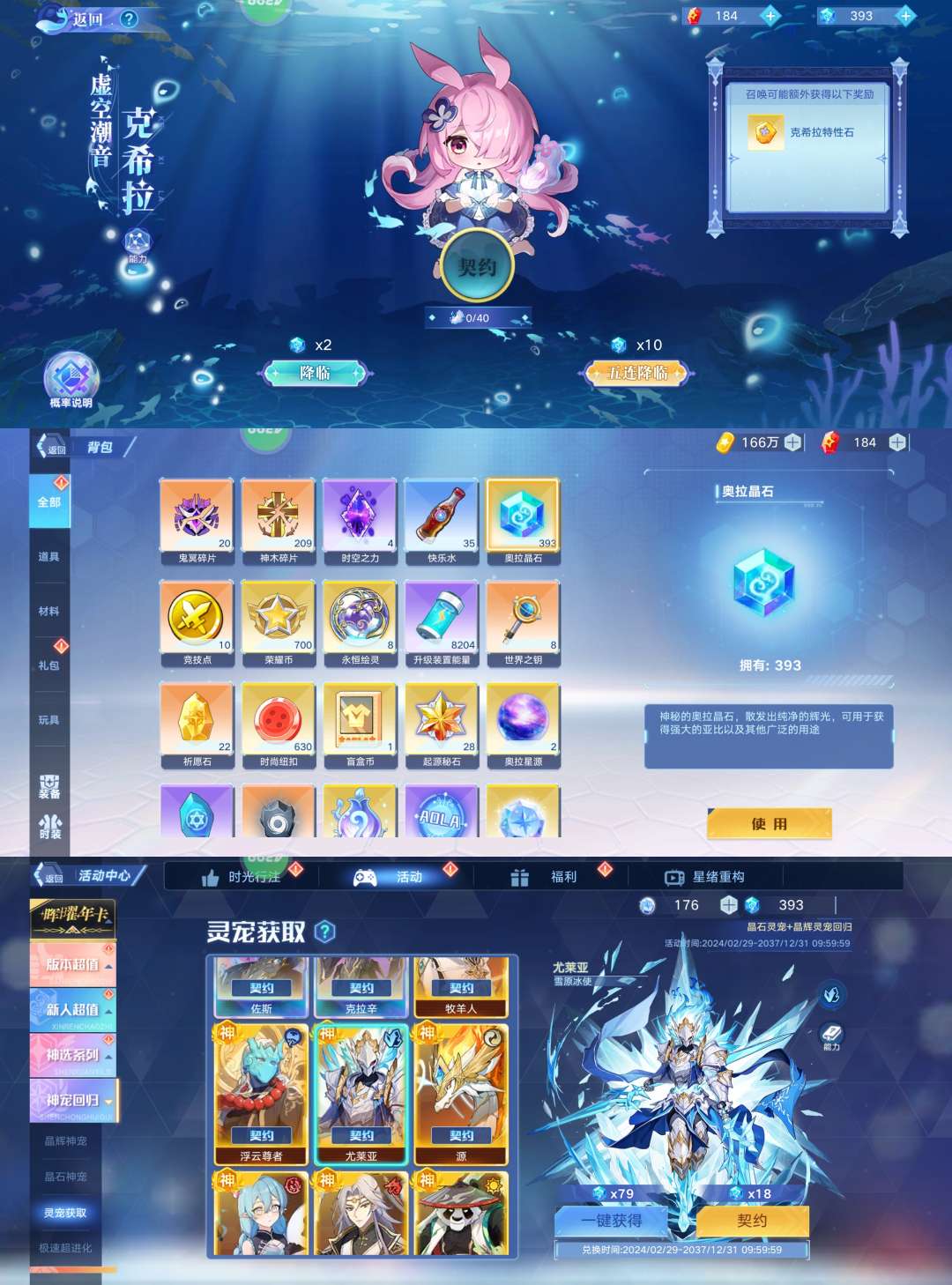 背包必有380晶石175辉石100星币,辉石可得戒律、时空王;晶石可获得克希拉无冕之王愚者乾坤等神宠
