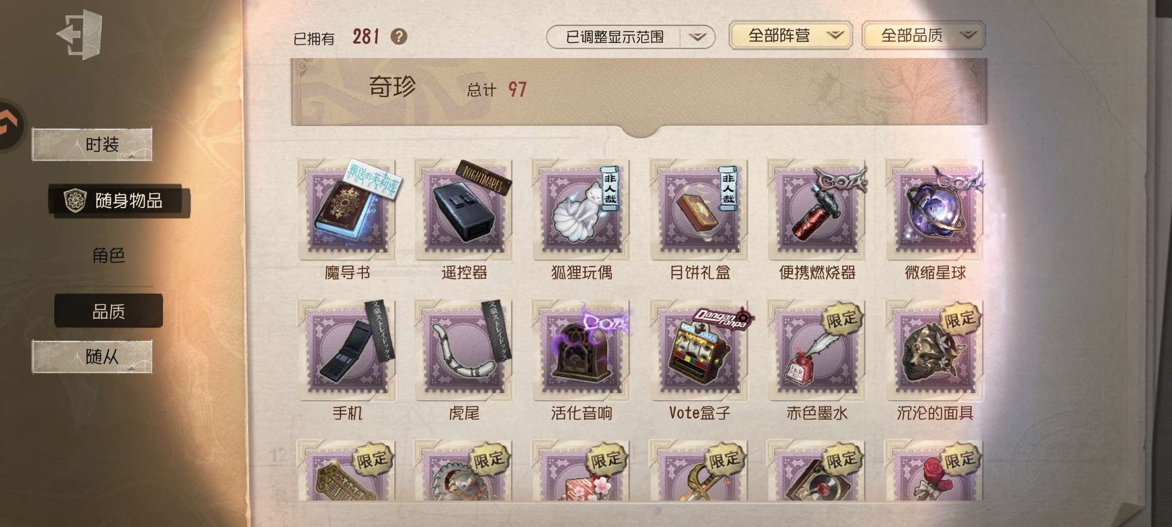 随身物品数量: