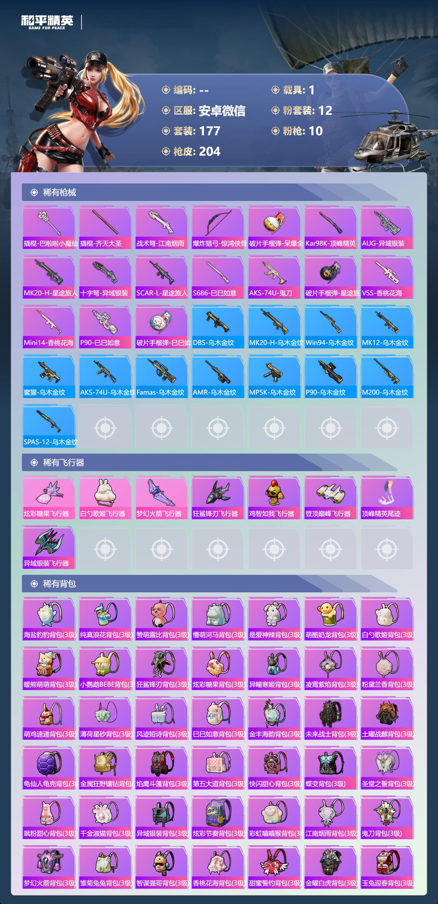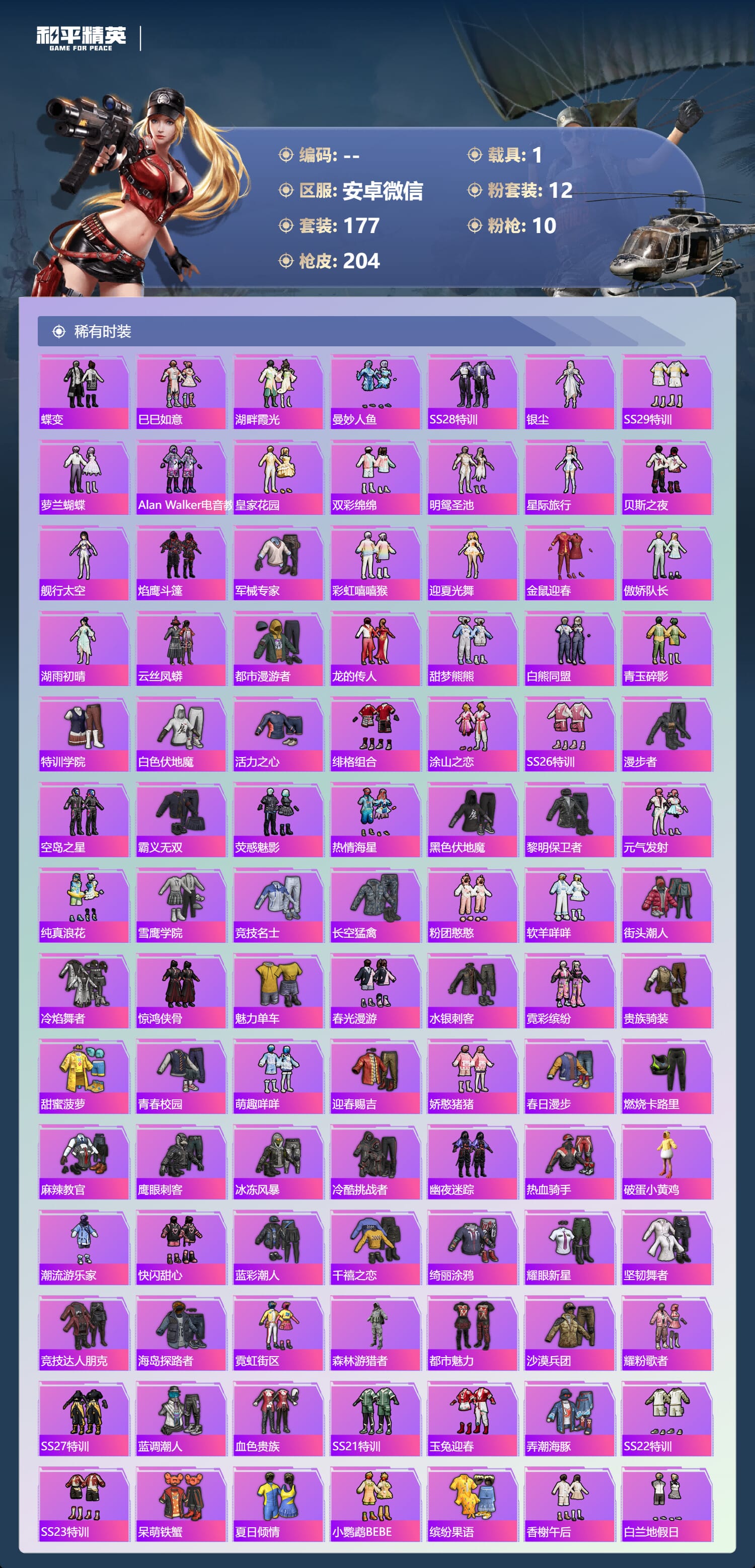 a4177/安卓v/-12王牌印记-12粉装-10特效枪-1载具-71112热力值-177套装-2