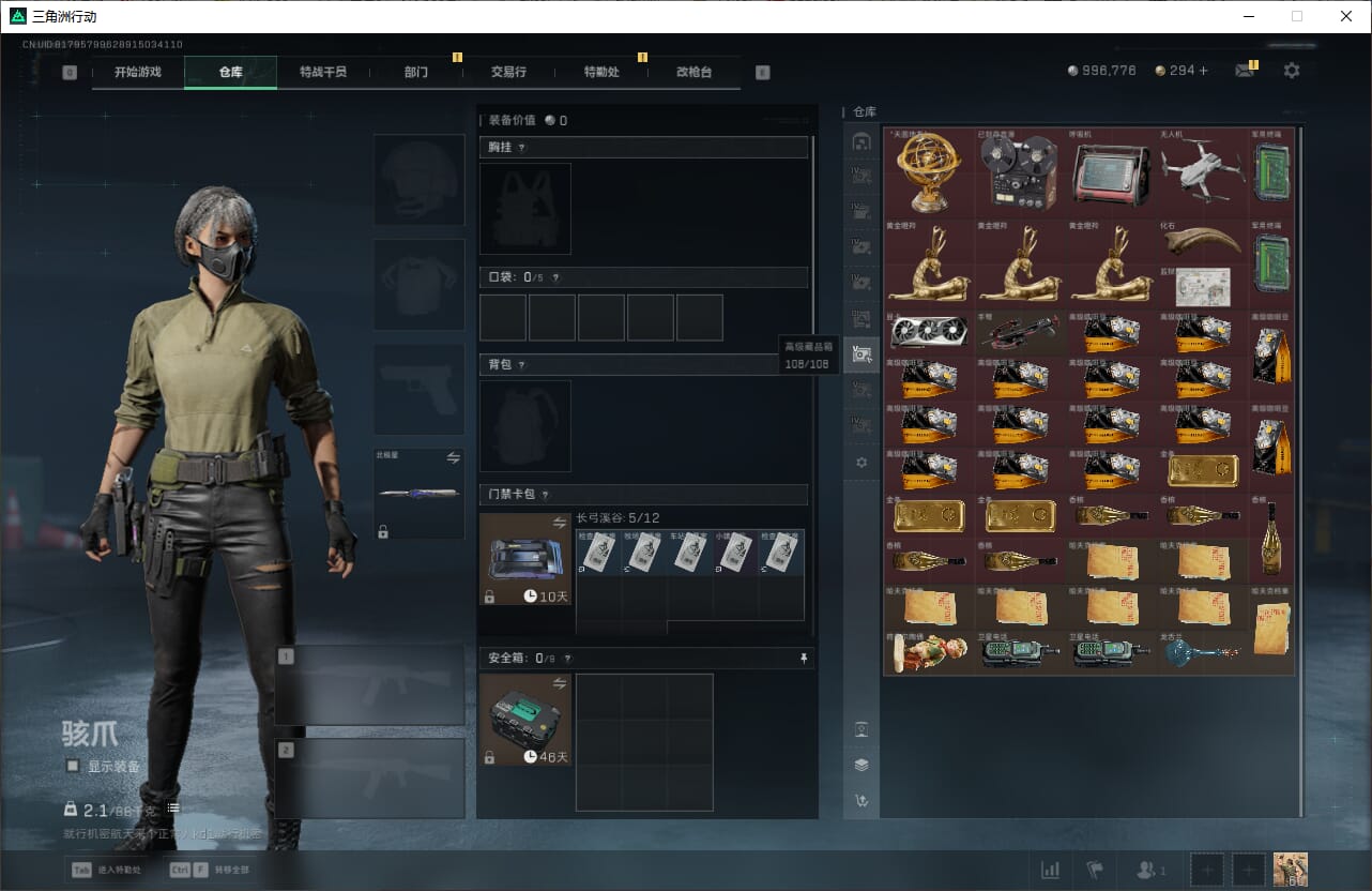 E9302/QQ区/可二次/【总资产:303M+哈夫币:99W+近战武器-北极星+蛊能天使午夜邮差+