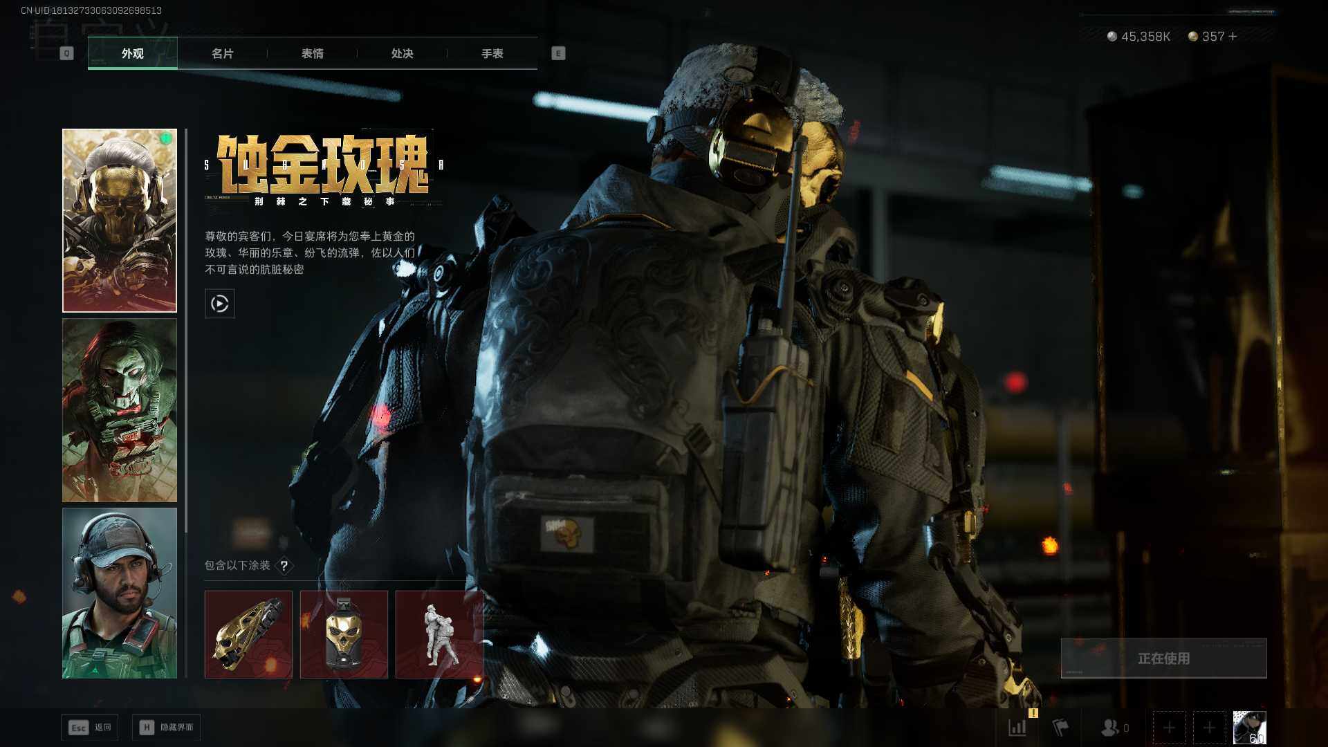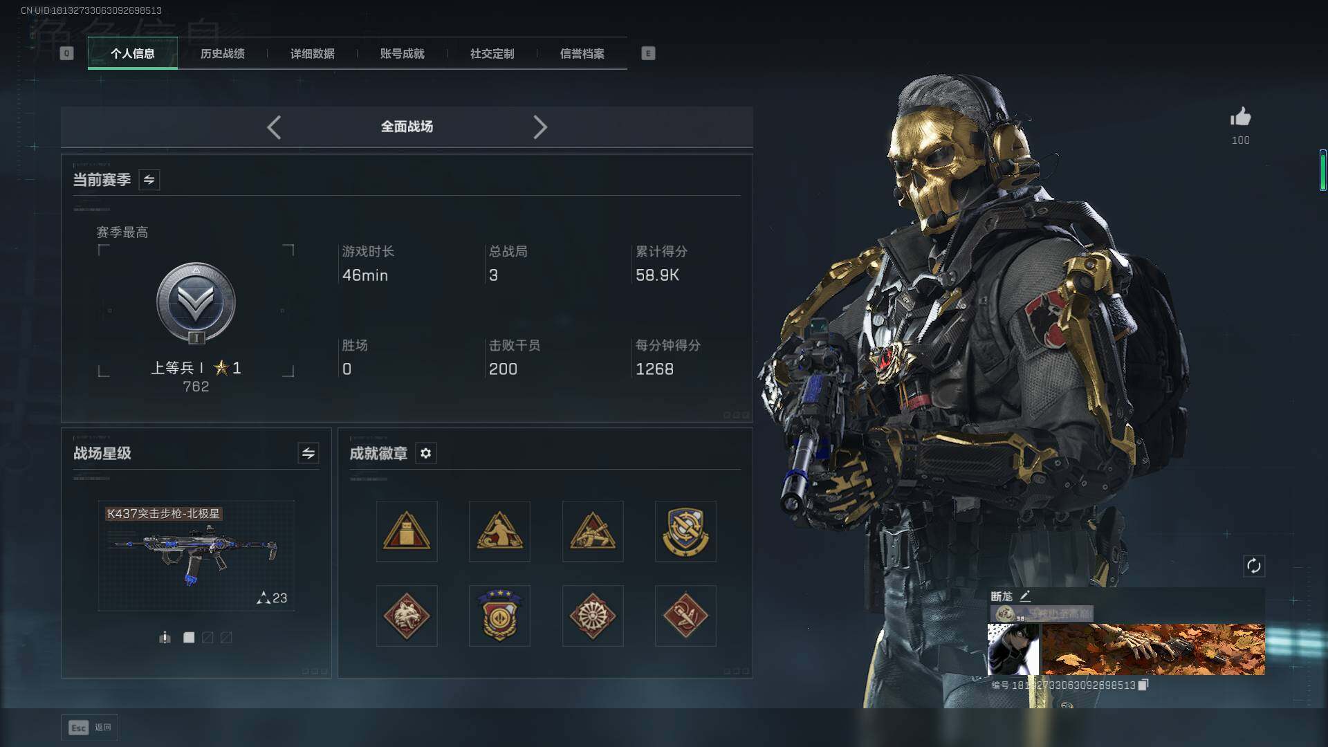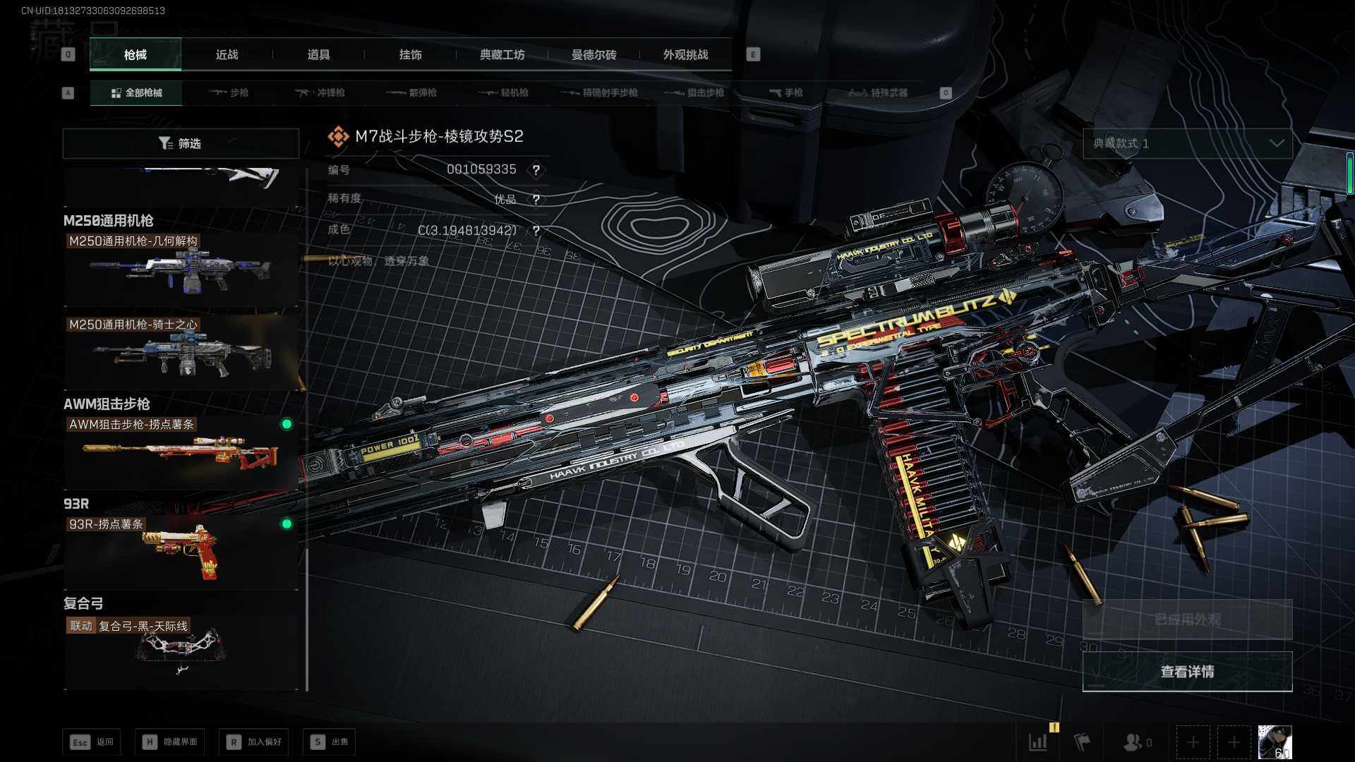 总资产(M):99M/哈夫币(K):45358K/哈夫币(K):45358K/传说枪皮数:21/全面