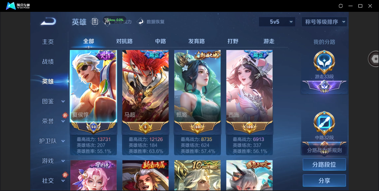 ky 无双v10 瑶满皮!貂蝉珍品无双!1.37w小国夏侯惇 1.21w金标马超 金标甄姬 可认证苹