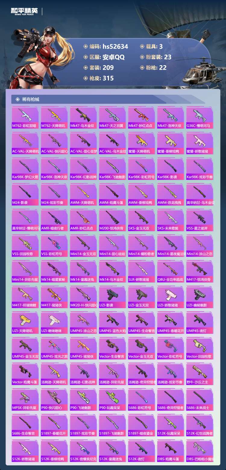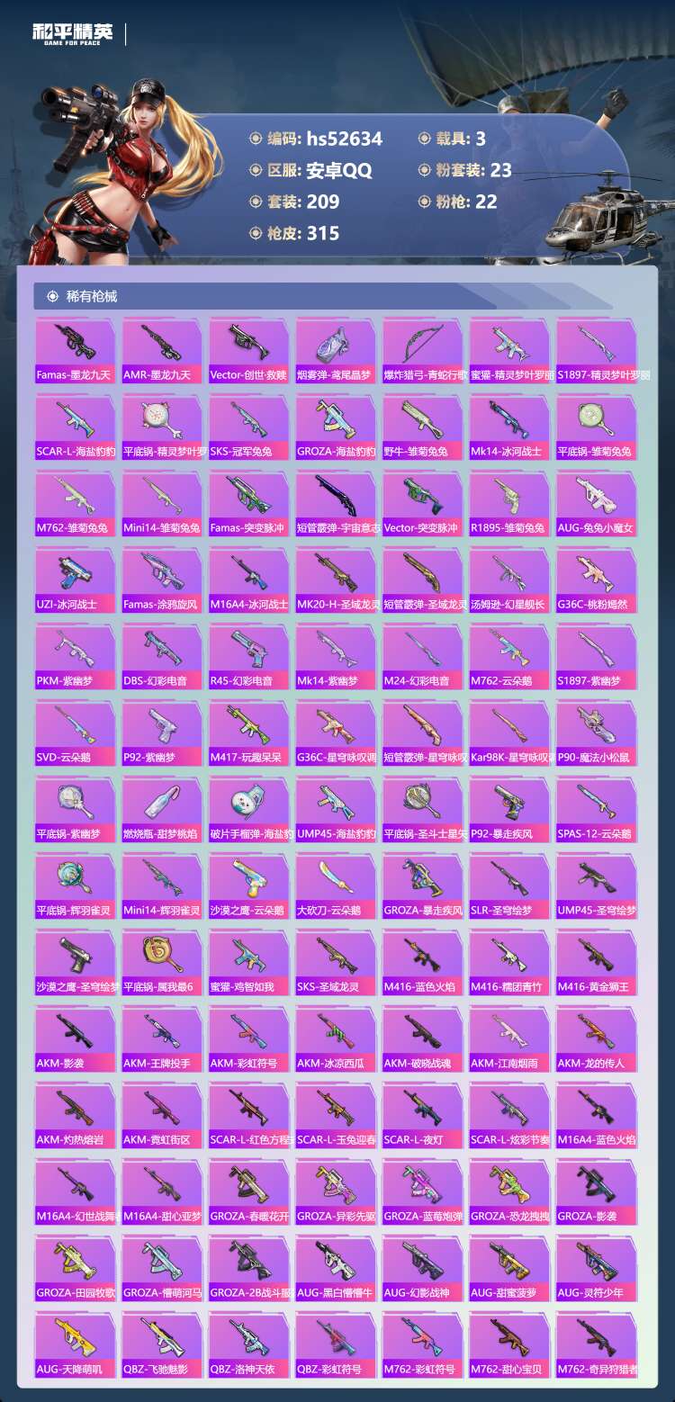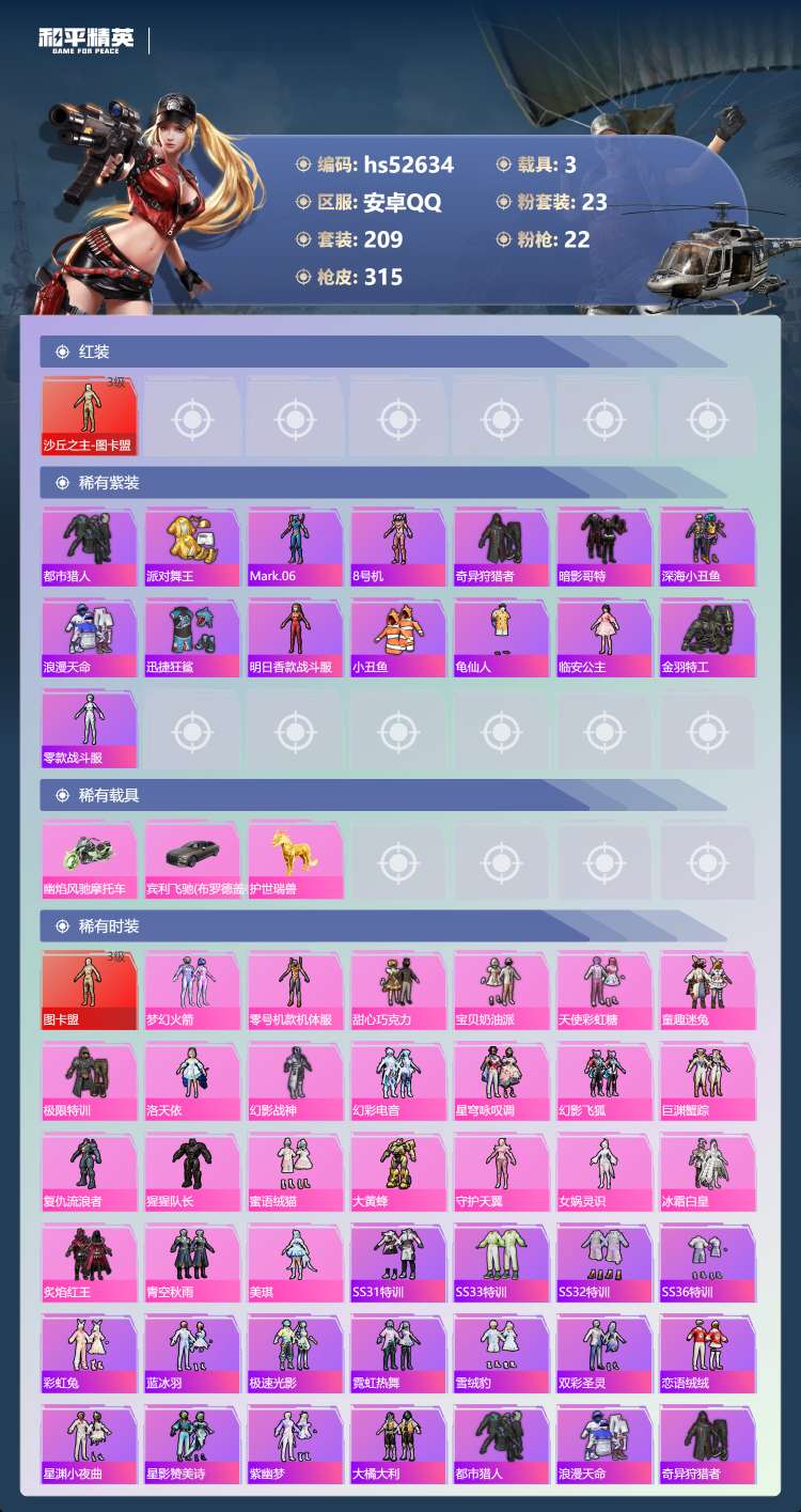 hs52634 安卓手Q-14王牌印记-1红装-23粉装-22特效枪-3载具-热力值-2