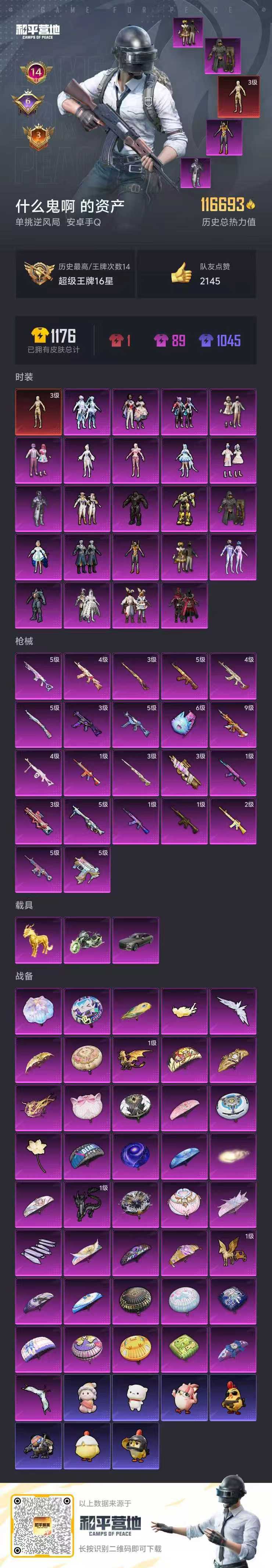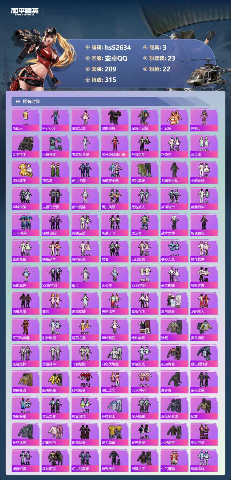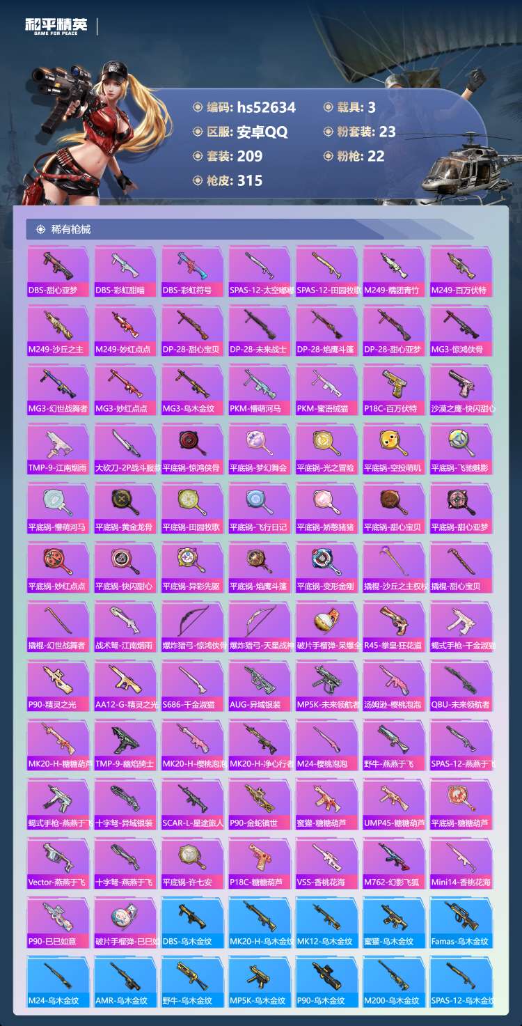 hs52634 安卓手Q-14王牌印记-1红装-23粉装-22特效枪-3载具-热力值-2