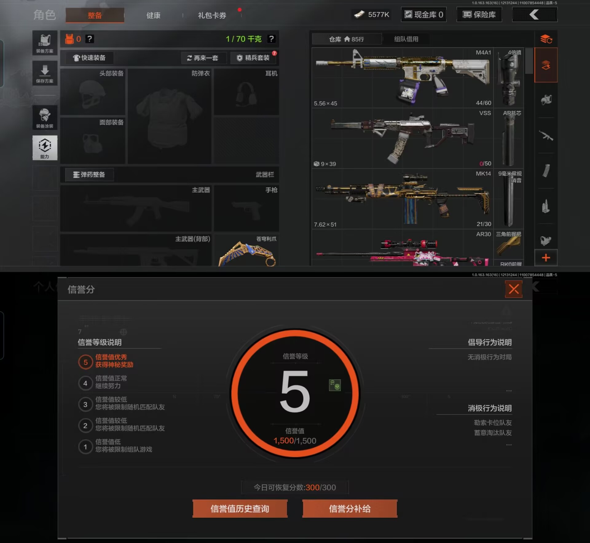 MWT3991【5刀皮 4金枪 65M资产】安卓Q-等级30-仓库价值65.4m-科恩币5577k-【枪皮】 蓝色咆哮·H416 伸冤者迷踪·M4A1 旧王圣谕·QBZ191 日王圣谕·VSS 【近战武器】 苍穹利爪 寒牙手刺 热能武器-补牢 工兵铲 开山刀