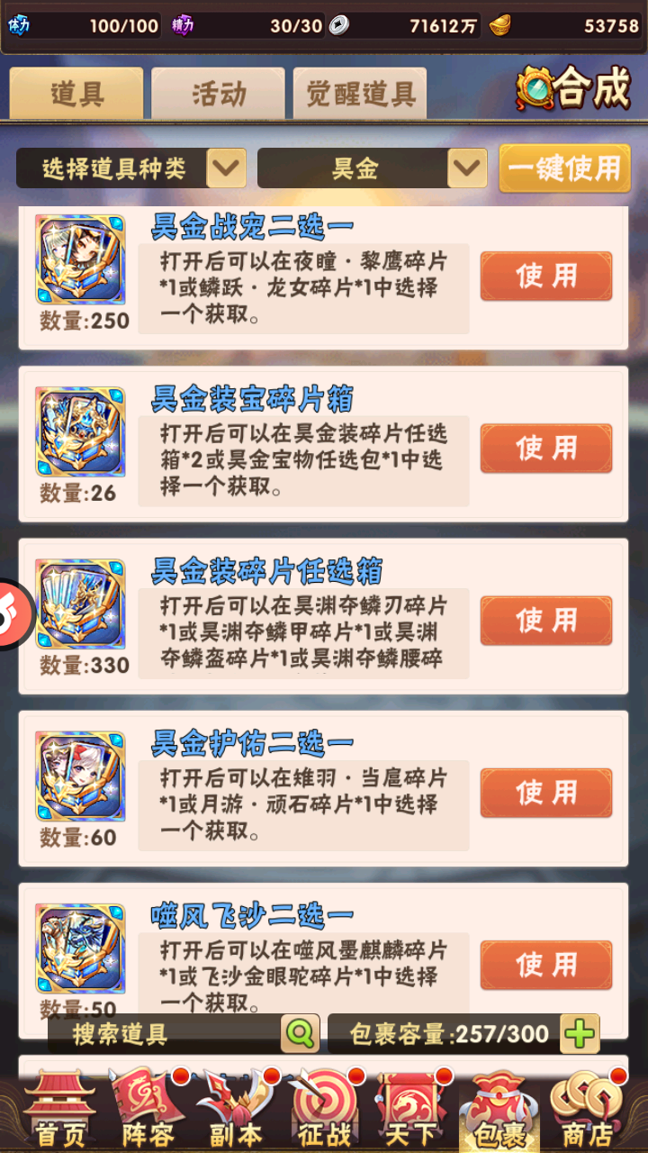 S4755区!梵金美人可合成!双魂金兵符可合成!4238魂金碎片1830吴金碎片2465幻金碎片开局!