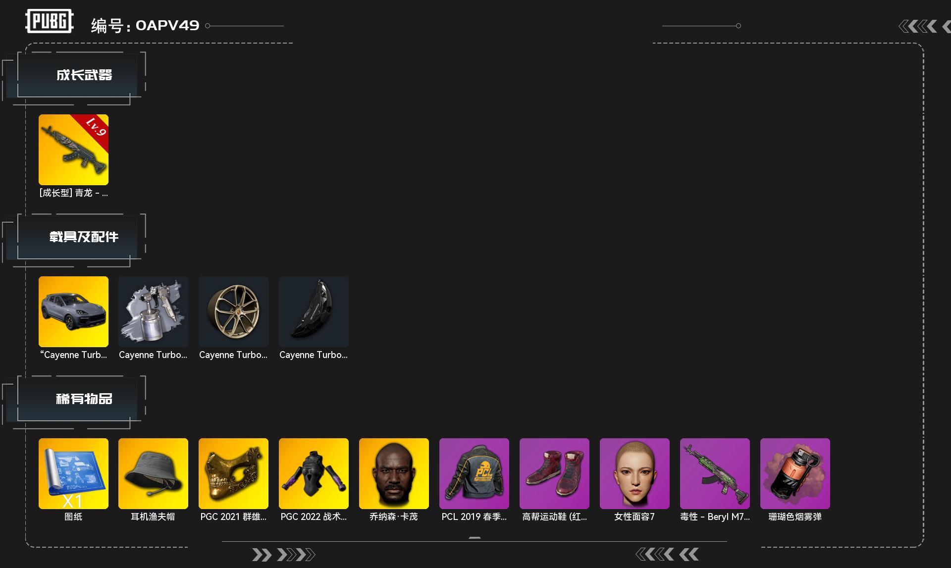 Z11991 生存400级可排位/9级青龙-BERYLM762/保时捷(4门吉普)/金面具/发光手臂
