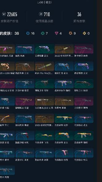 终极*9/卓越*4/皮肤*36/等级*96/段位:黄金/