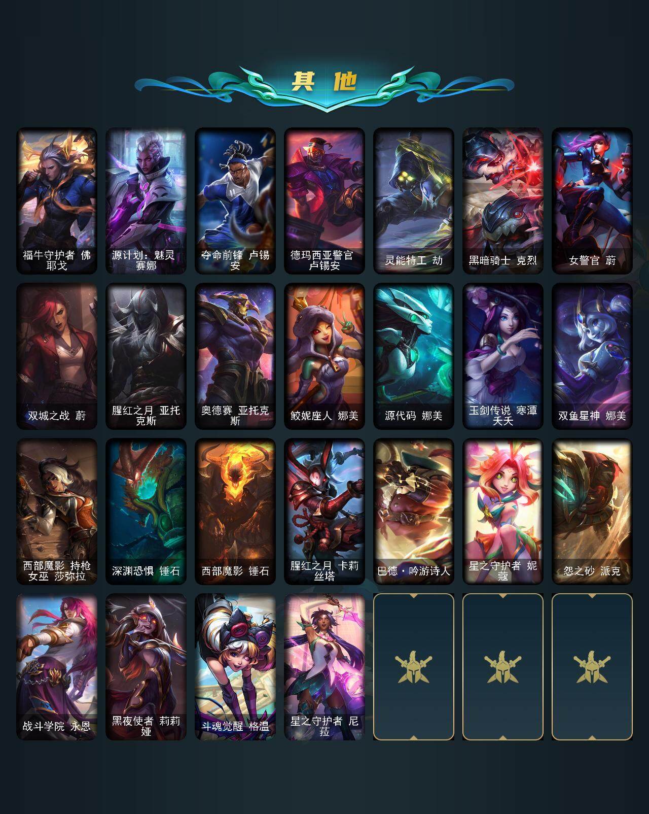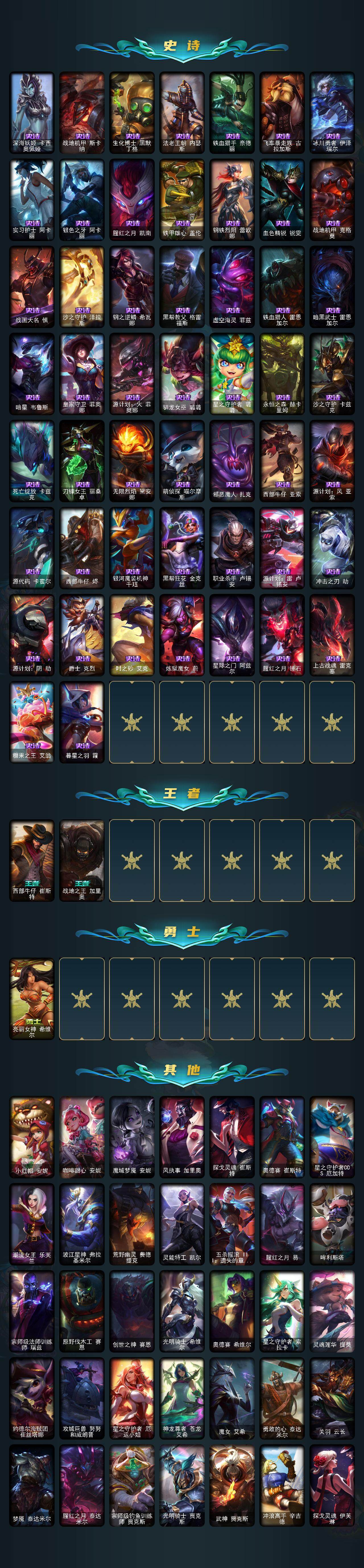 171英雄/362皮肤/2终极/19神话/53限定/14臻彩/245炫彩/40传说/79史诗/未定级账号等级:431/