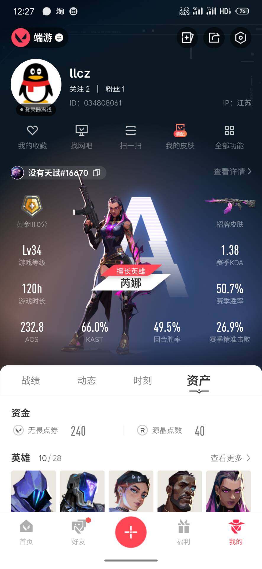 终极*4/卓越*1/皮肤*16/等级*34/段位:黄金/
