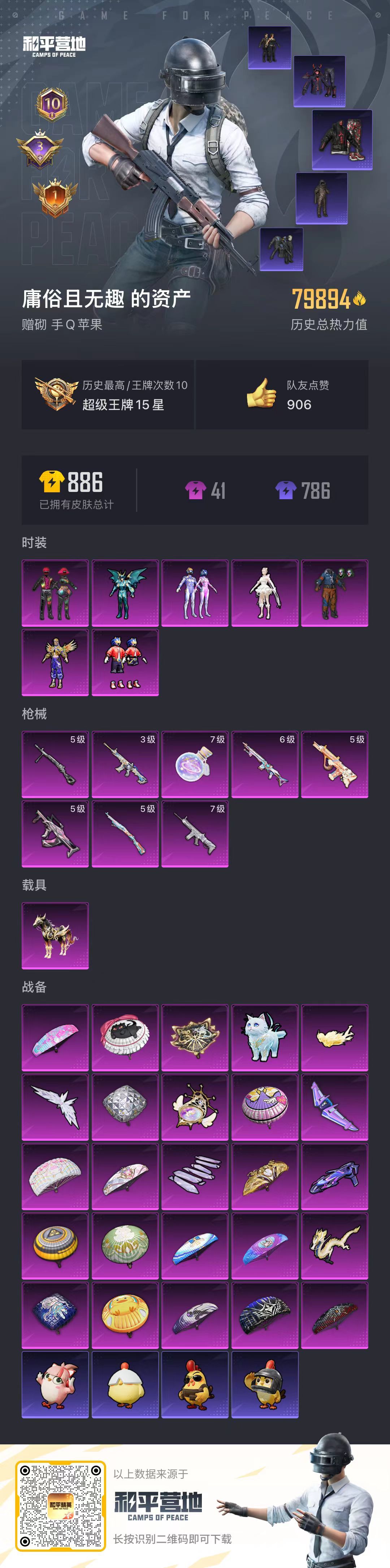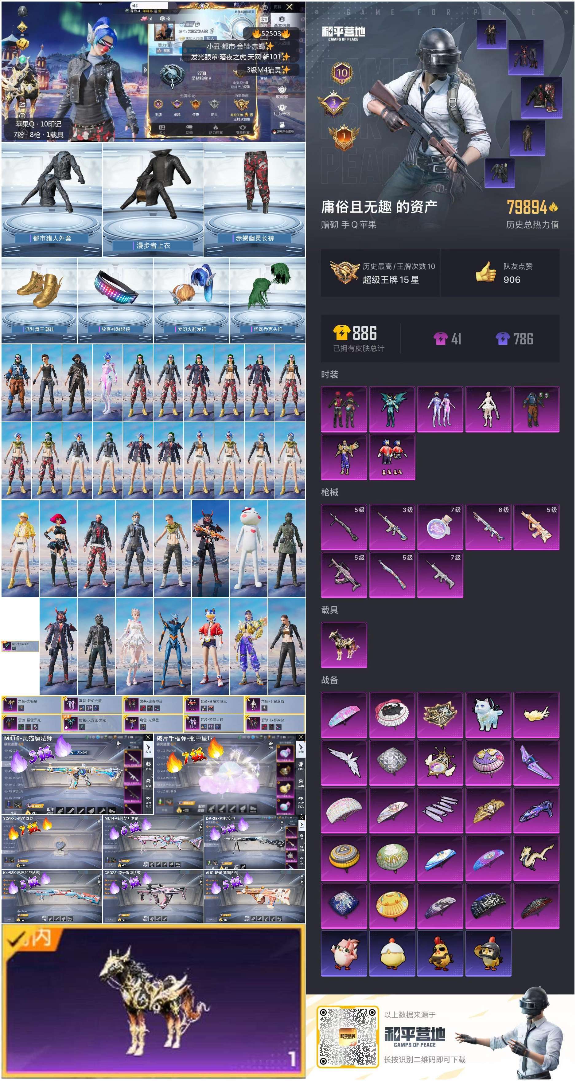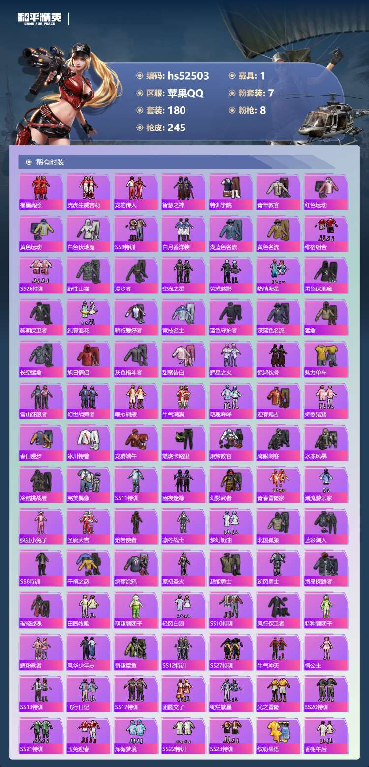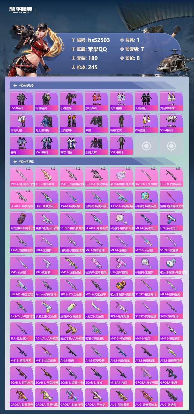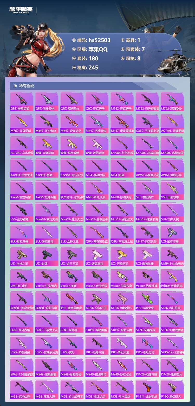 hs52503 苹果手Q-10王牌印记-7粉装-8特效枪-1载具-热力值-180套装-24