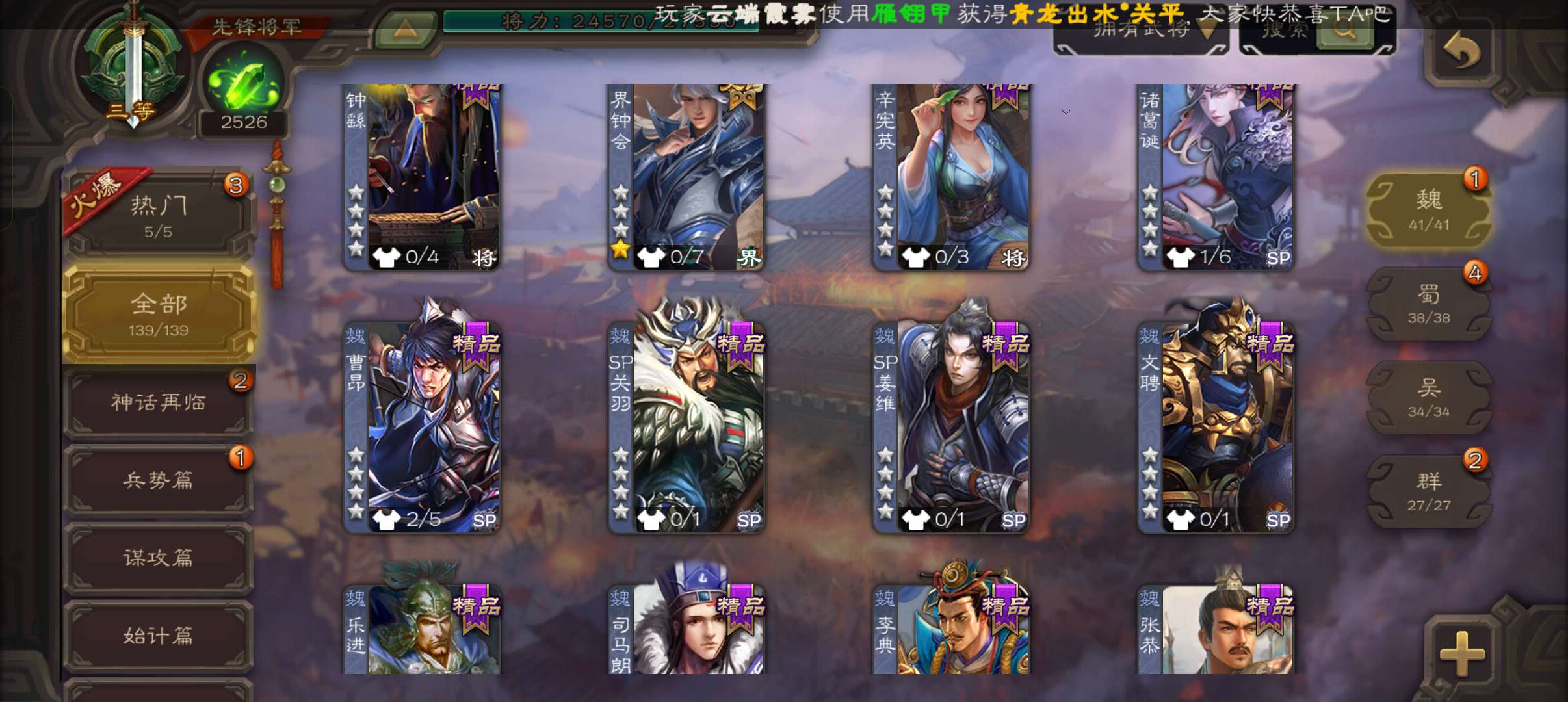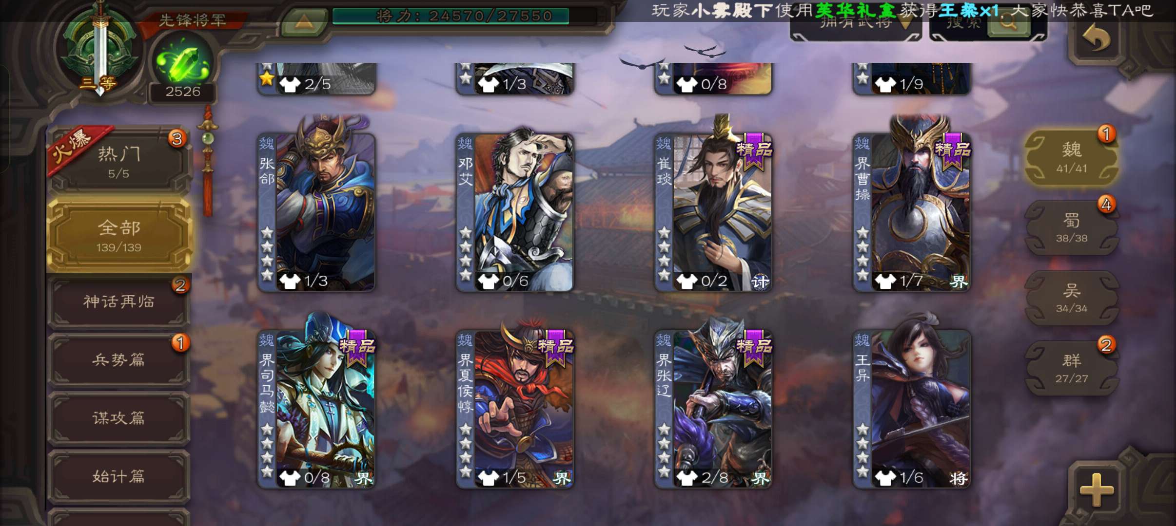 2500魂6.4万羽毛4.7万豆,界钟会沙摩柯双史诗先锋,谋卢植崔琰张布界吕布势陈祗139将