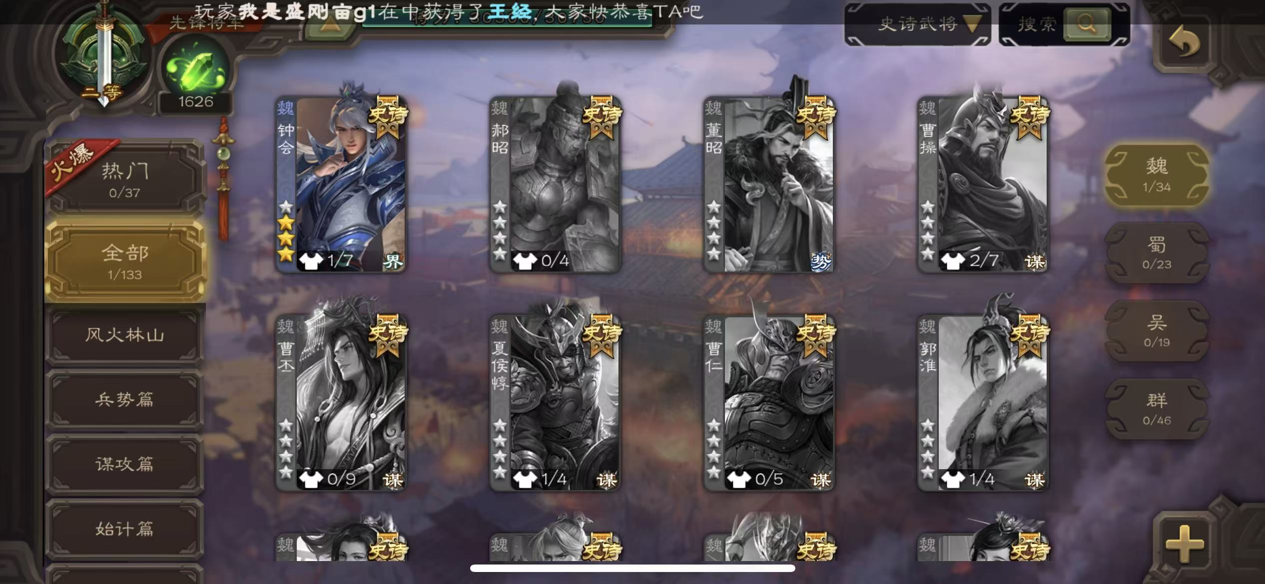 先锋回廊双形态动态界钟会动态郭嘉天子令sp赵云三卡