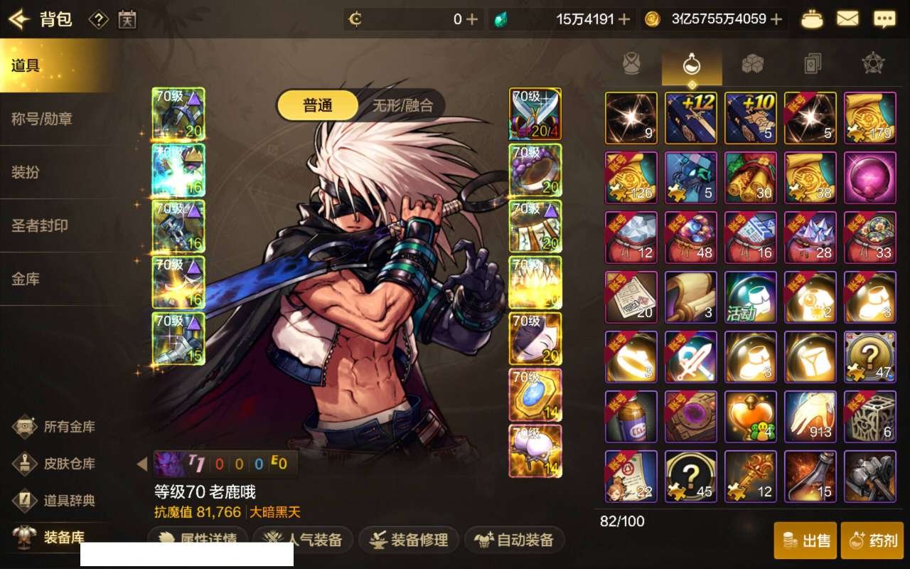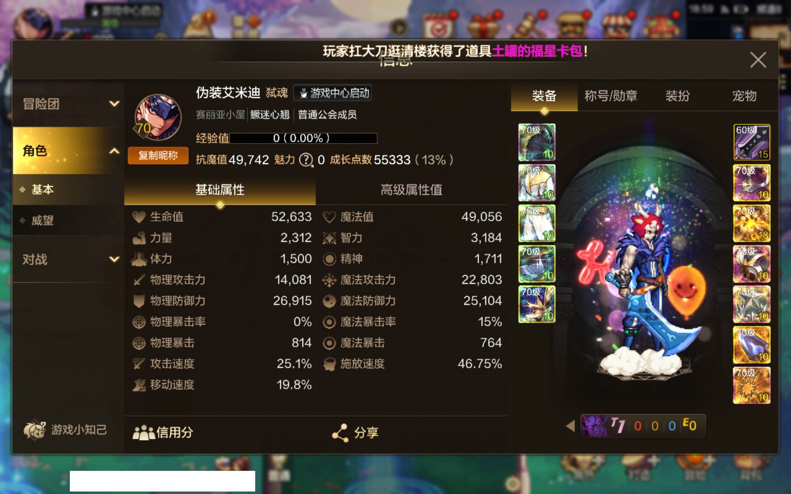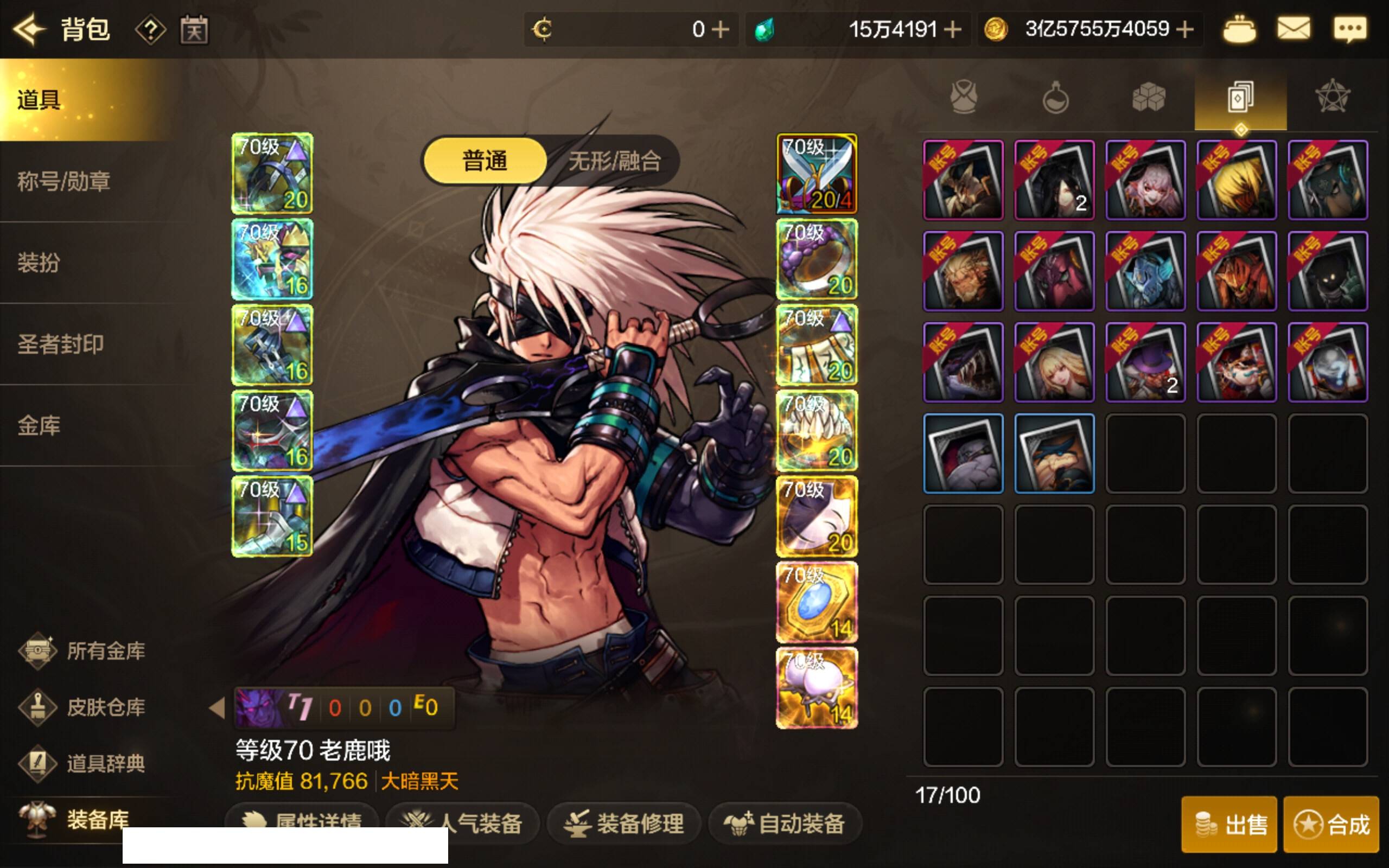 阿修罗 +20武器强化 天空套 8.1W抗魔值 3满级角色
