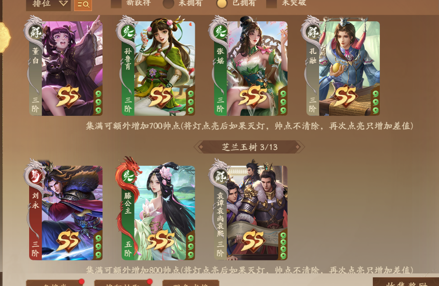 双人号严夫人星曹仁星袁绍许靖,神张飞丁尚碗周宣,赵直赵昂刘华,乐蔡文姬乐大乔管宁,吉平孙綝,袁胤张勋