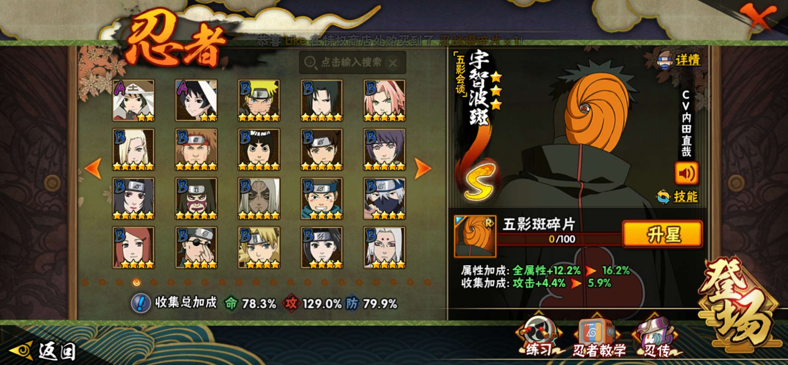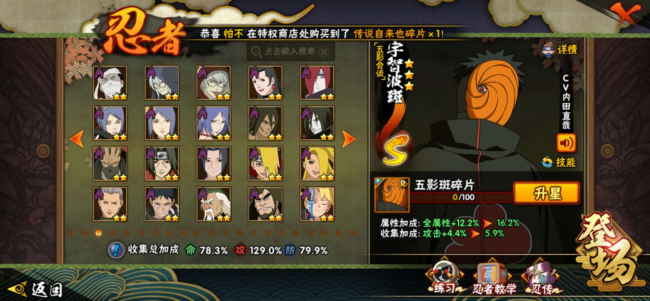 榜三博文路已买 换纲手马上就能出,三代风影差6 创立柱间下次能出,自来也70片,2个付费场景
