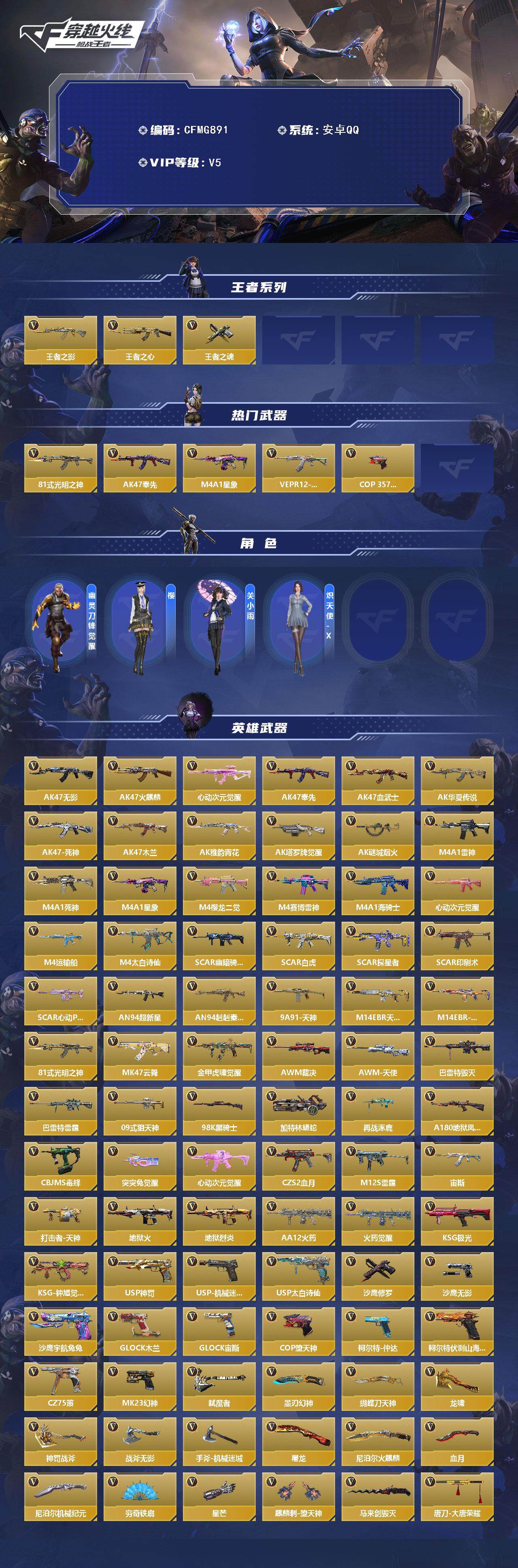 【CFMG891】VIP5/157V/王者之影/王者之心/王者之魂/81式-光明之神/AK47-奉先/M4A1-星象/VEPR12-宙斯/COP 357-堕天神/幽灵刀锋觉醒/樱/关小雨/炽天使-X/AK47-无影/AK47-火麒麟/AK47-心动次元觉醒/AK47奉先/AK47-血武士/AK47-华夏传说/AK47-死神/AK47-木兰/AK47-雅韵青花/AK47-塔罗牌觉醒/AK47-谜城烟火/M4A1-雷神/M4A1-死神/M4A1星象/M4A1-樱龙·二觉/M4A1-赛博雷神/M4A1