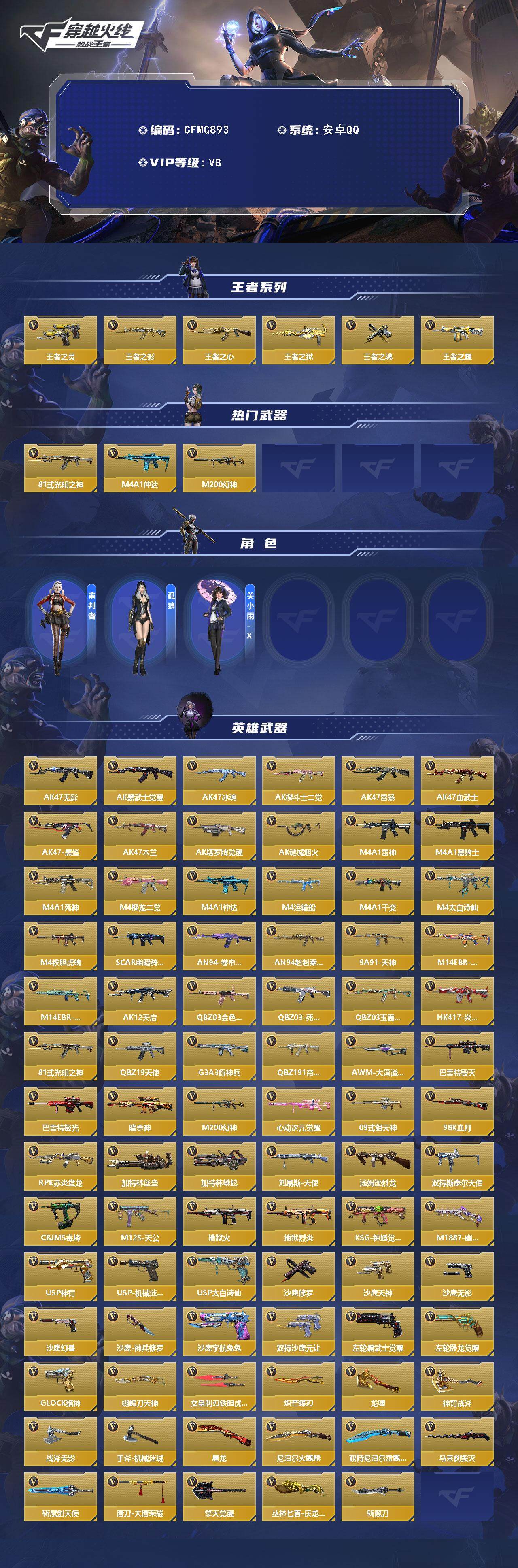 【CFMG893】VIP8/187V/王者之灵/王者之影/王者之心/王者之狱/王者之魂/王者之霆/81式-光明之神/M4A1-仲达/M200-幻神/审判者/孤狼/关小雨X/AK47-无影/AK47-黑武士觉醒/AK47-冰魂/AK47-樱斗士-二觉/AK47-雷暴/AK47-血武士/AK47-黑鲨/AK47-木兰/AK47-塔罗牌觉醒/AK47-谜城烟火/M4A1-雷神/M4A1-黑骑士/M4A1-死神/M4A1-樱龙·二觉/M4A1仲达/M4A1-运输船/M4A1-千变/M4A1-太白诗仙/M