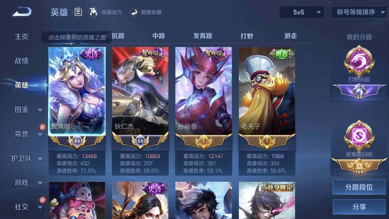 营地账号:455264792/【2小国标 7个金标 5个万战】V3-最强王者段位-125英雄-187皮肤-1典藏皮肤-1珍品传说-9传说-44史诗
