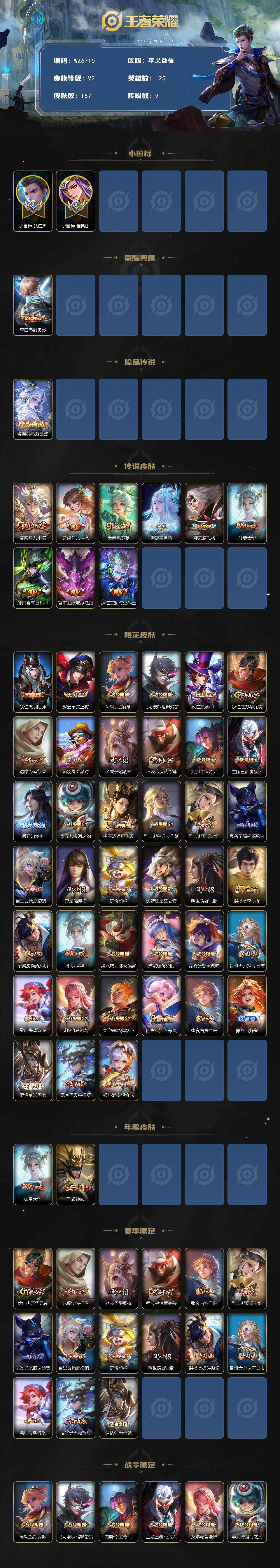 【2小国标 7个金标 5个万战】V3-最强王者段位-125英雄-187皮肤-1