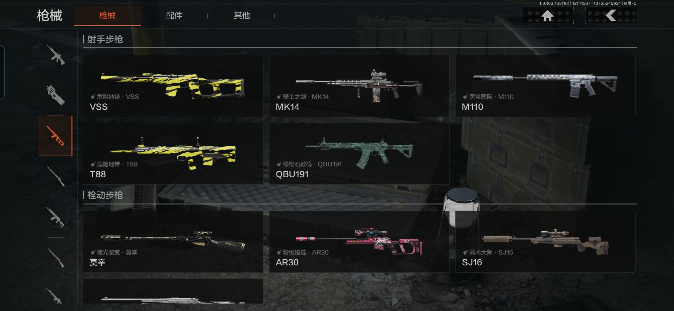 MWT3999【仓库价值662K 盘牙 1金枪】安卓Q-等级30-仓库价值662k-科恩币188k-【枪皮】 竞技·FAL 【套装】 都市夜影套装 【近战武器】 盘牙