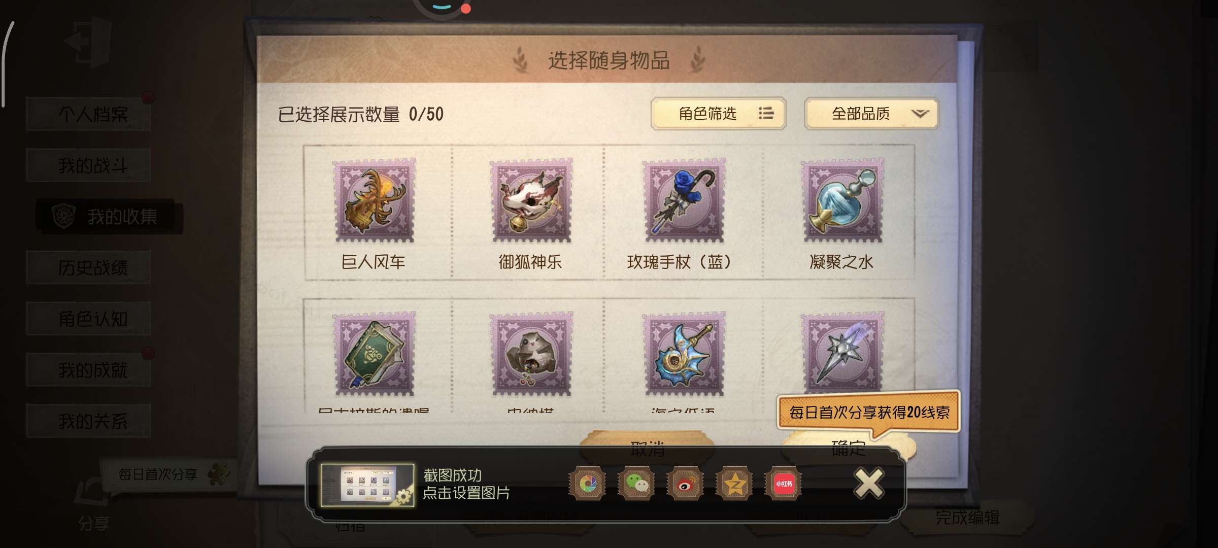 随身物品: