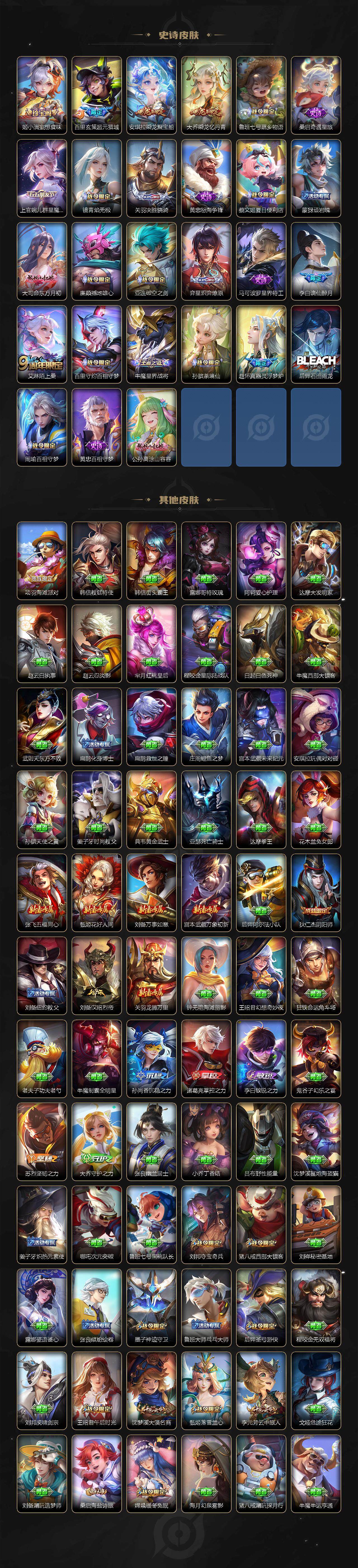 【英雄全皮】:武则天全皮,刘邦全皮,娜可露露全皮,橘右京全皮,李信全皮,猪八戒全皮,马超全皮,司空震全皮,金蝉全皮,影全皮