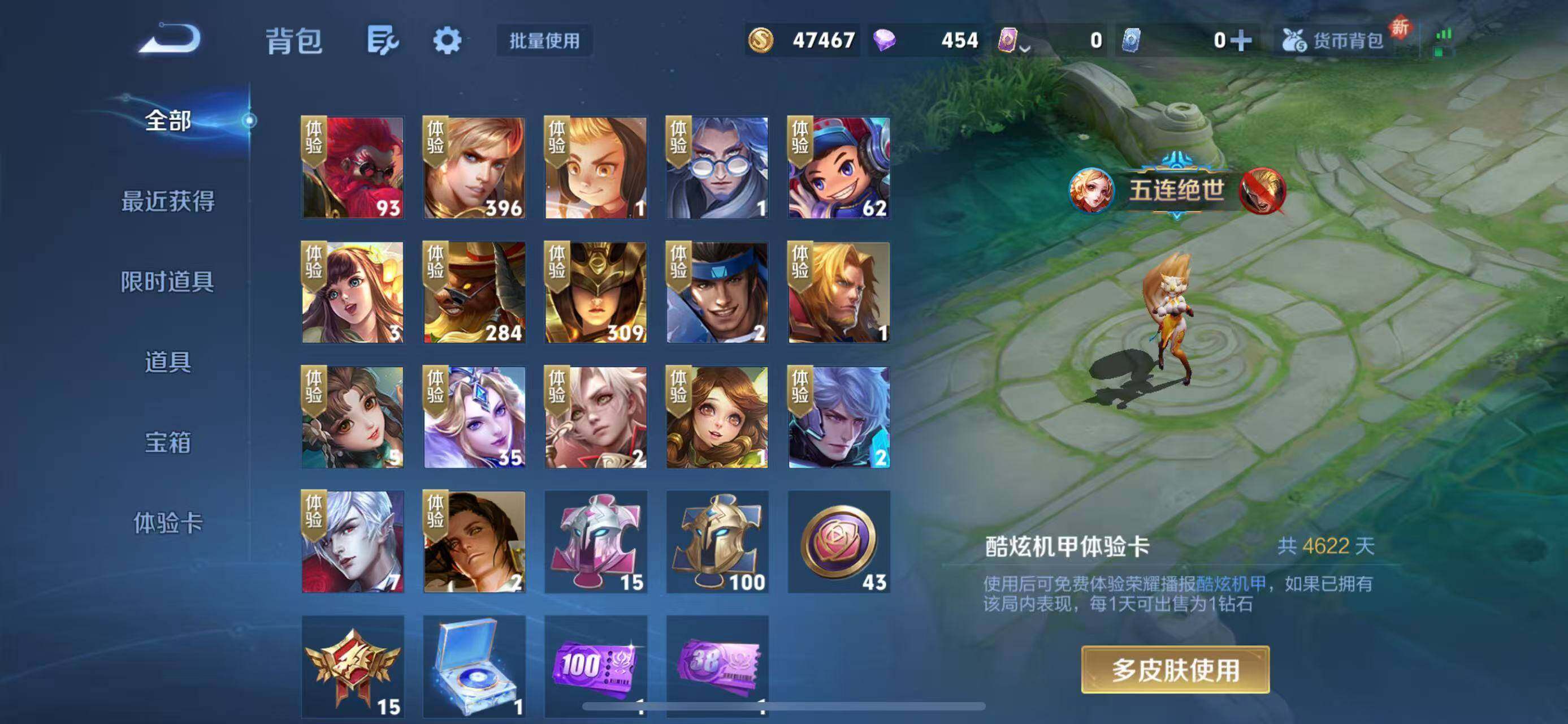 【限定皮肤】:姜子牙天穹之誓,狄仁杰阴阳师,赵云皇家上将,孙尚香蔷薇恋人,庄周高山流水,狄仁杰魔术师,达摩沙漠行僧,项羽海滩派对,兰陵王金庭之子,李元芳云中旅人,鬼谷子五谷丰年,百里玄策原初追逐者