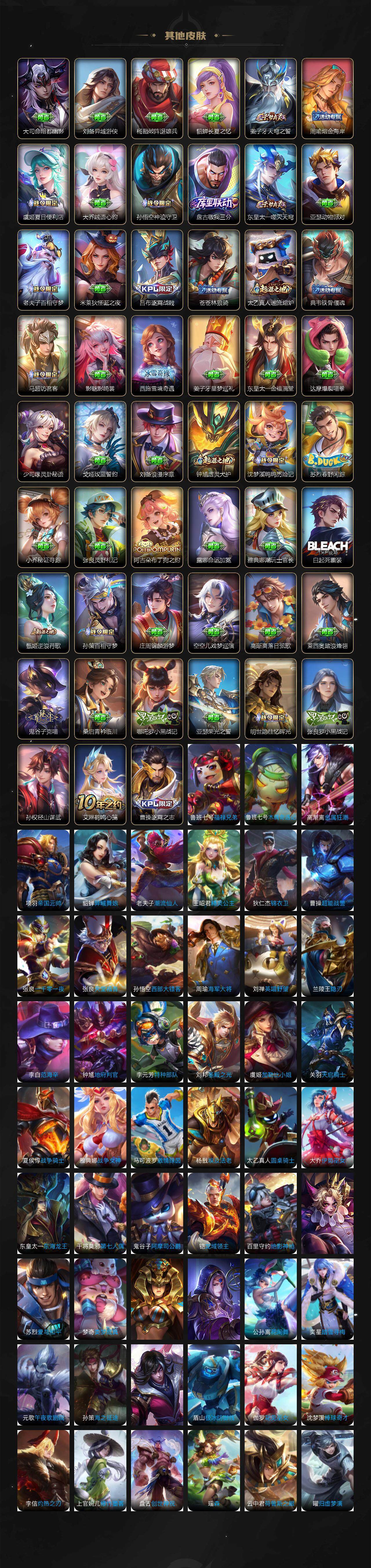 【英雄全皮】:达摩全皮,孙权全皮,戈娅全皮,空空儿全皮,影全皮