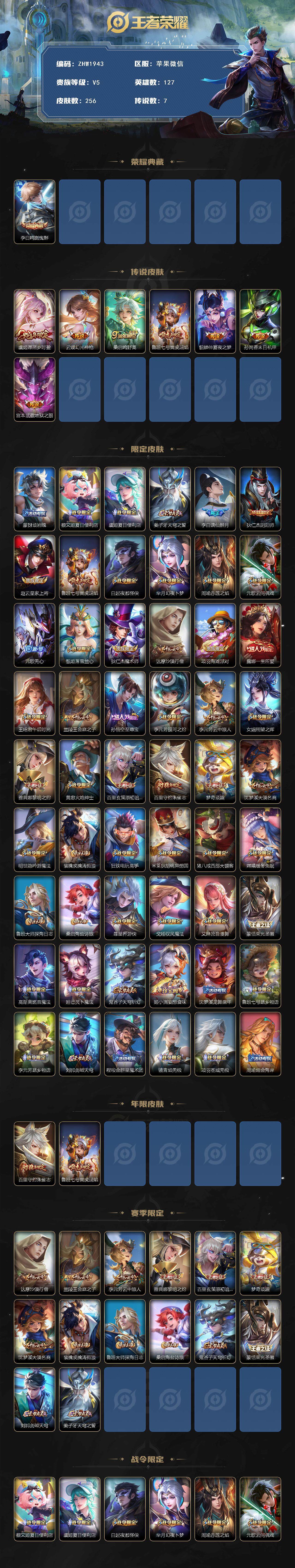 苹果微信-1典藏-7传说-256皮肤-127英雄-非凡王者-
