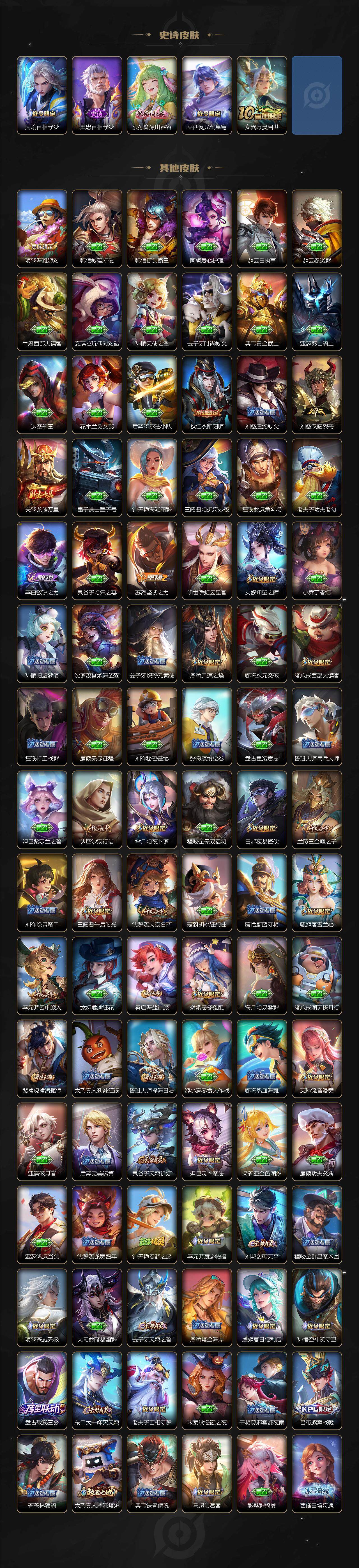 苹果WX-V5-最强王者段位-127英雄-256皮肤-1典藏皮肤-7传说-82史诗