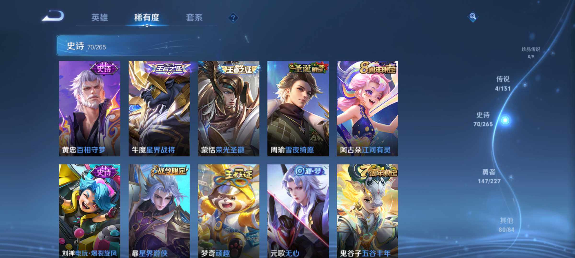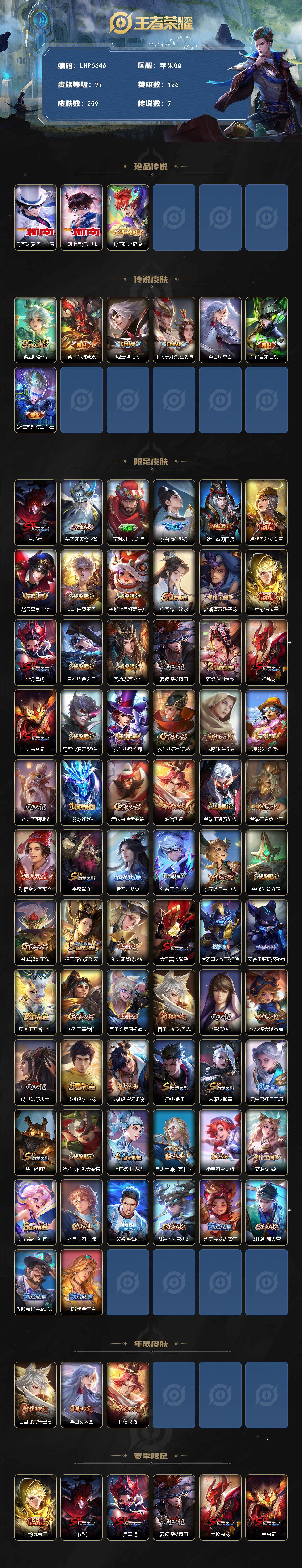苹果Q-V7-最强王者段位-126英雄-259皮肤-3珍品传说-7传说-68史诗
