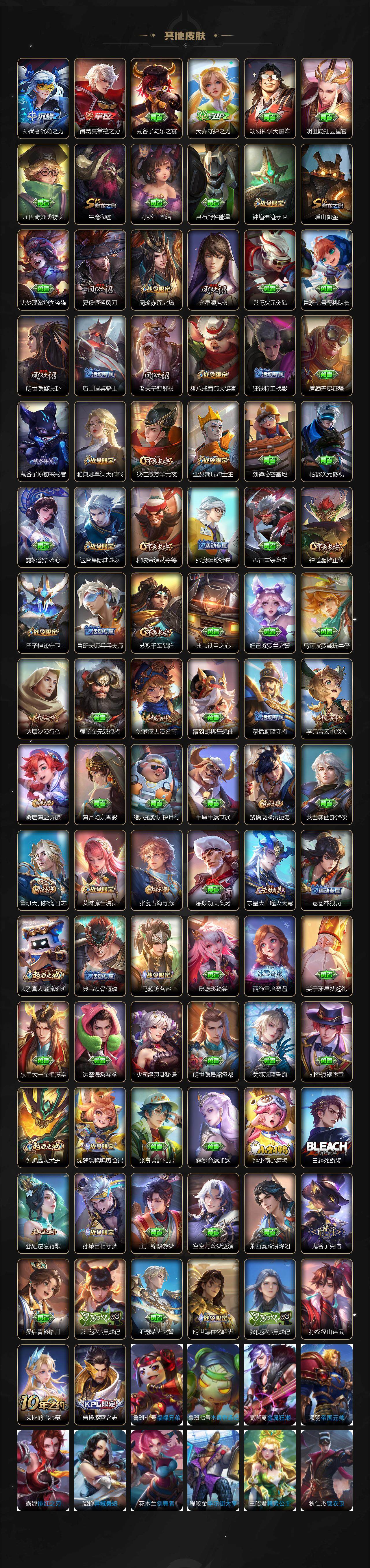 【限定皮肤】:狄仁杰阴阳师,赵云皇家上将,墨子神迹守卫,孙尚香蔷薇恋人,鲁班七号狮舞东方,周瑜赤莲之焰,元歌云