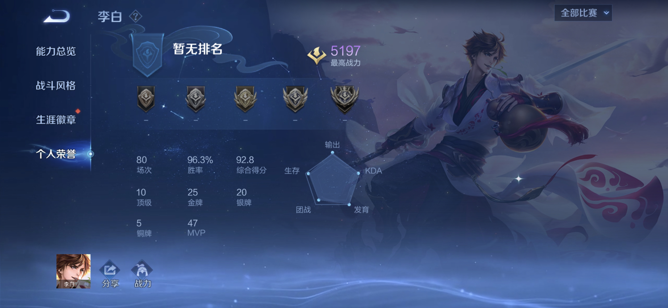 王者荣耀李白96胜率号传说皮,多高质量皮肤高评分高胜率