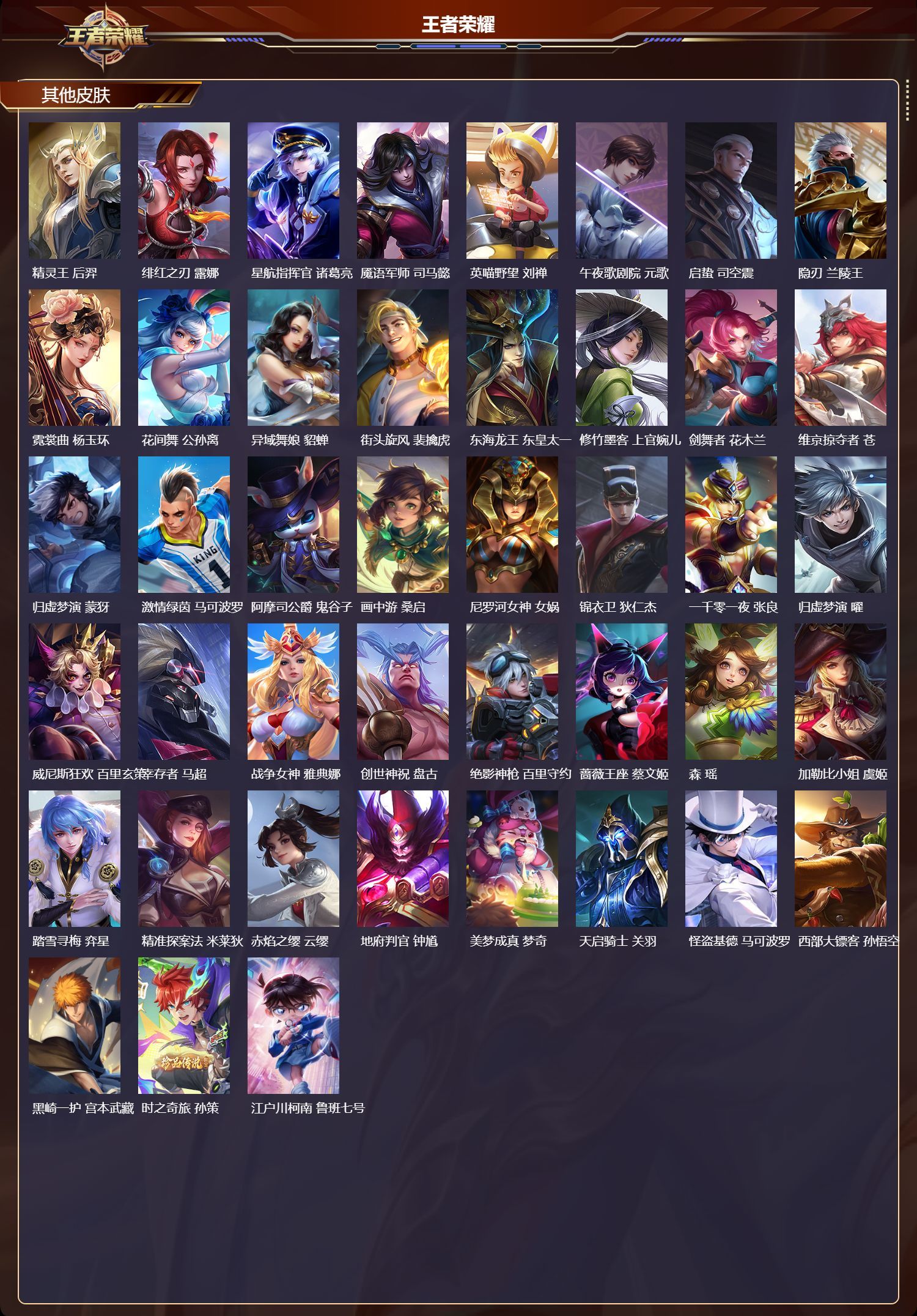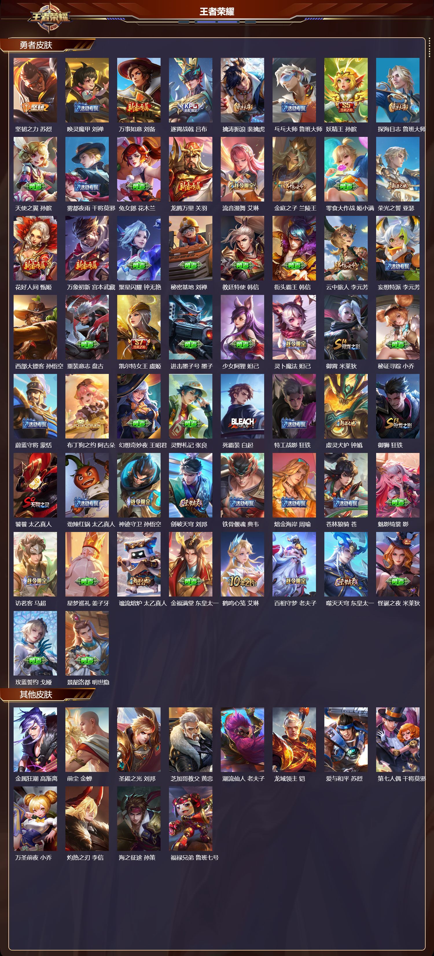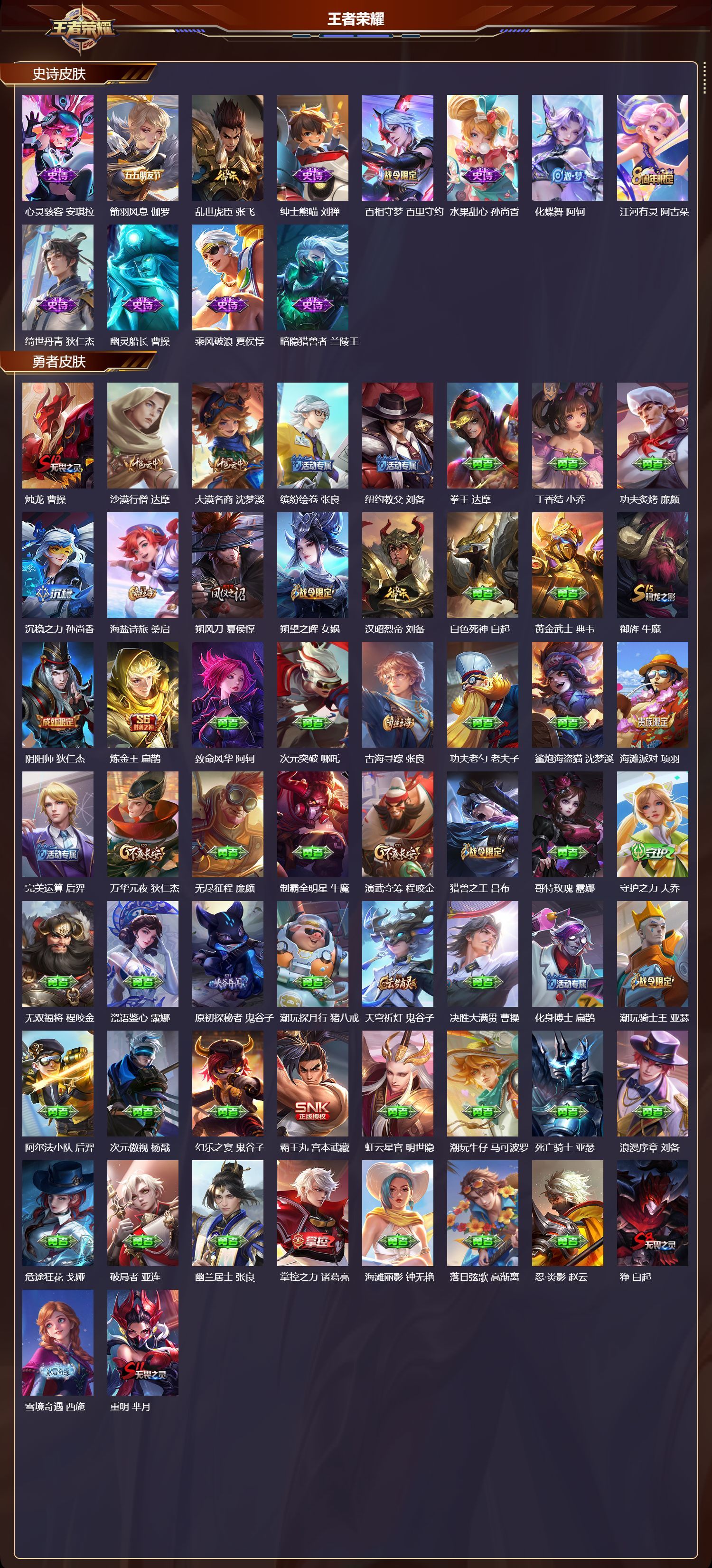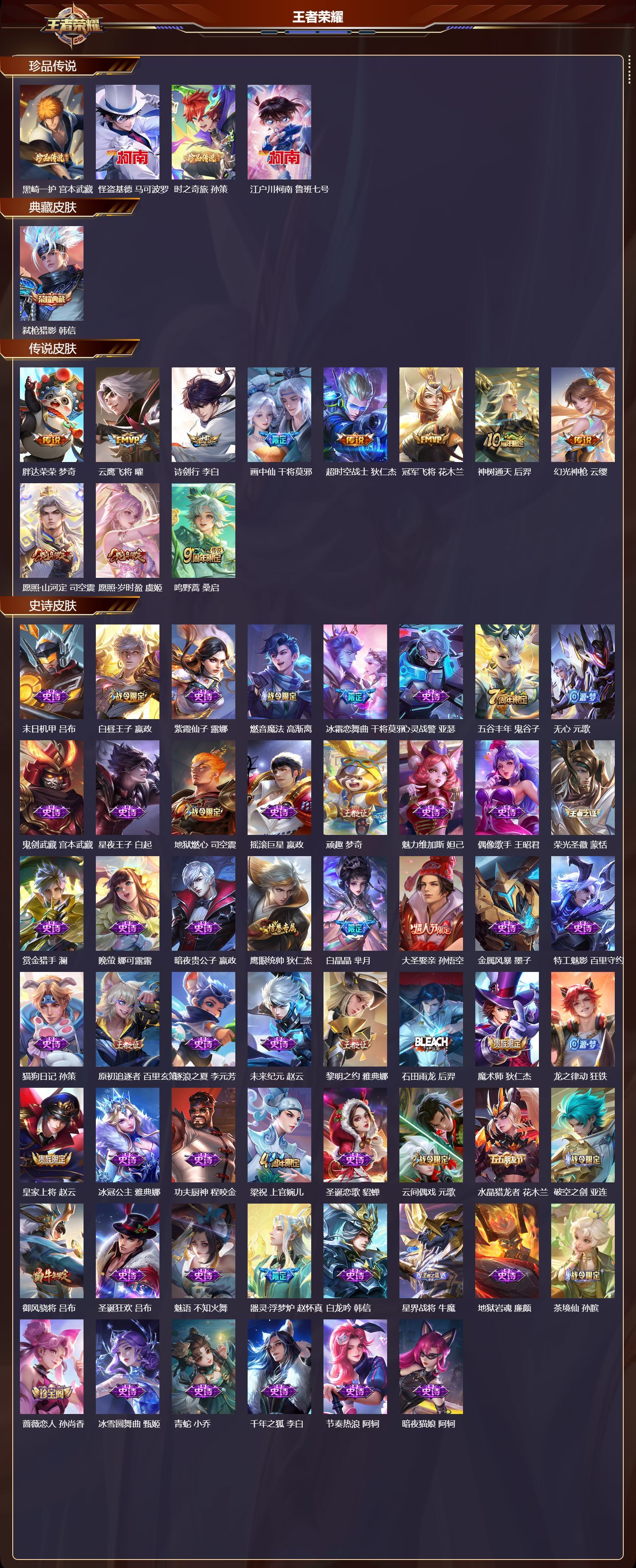 苹果QQ/绝世王者/249皮肤/125英雄/1典藏/0珍品无双/0无双/4珍品传说/11传说/66史