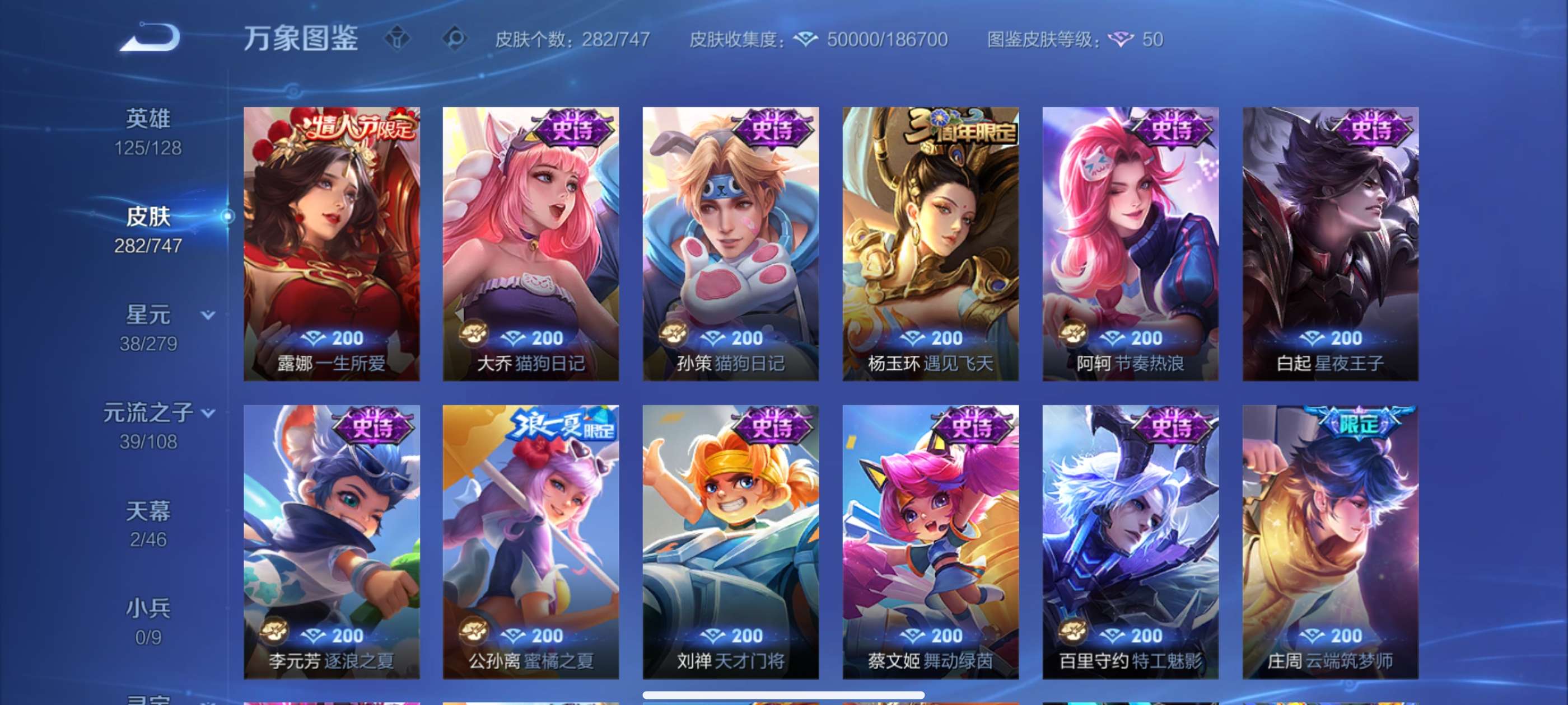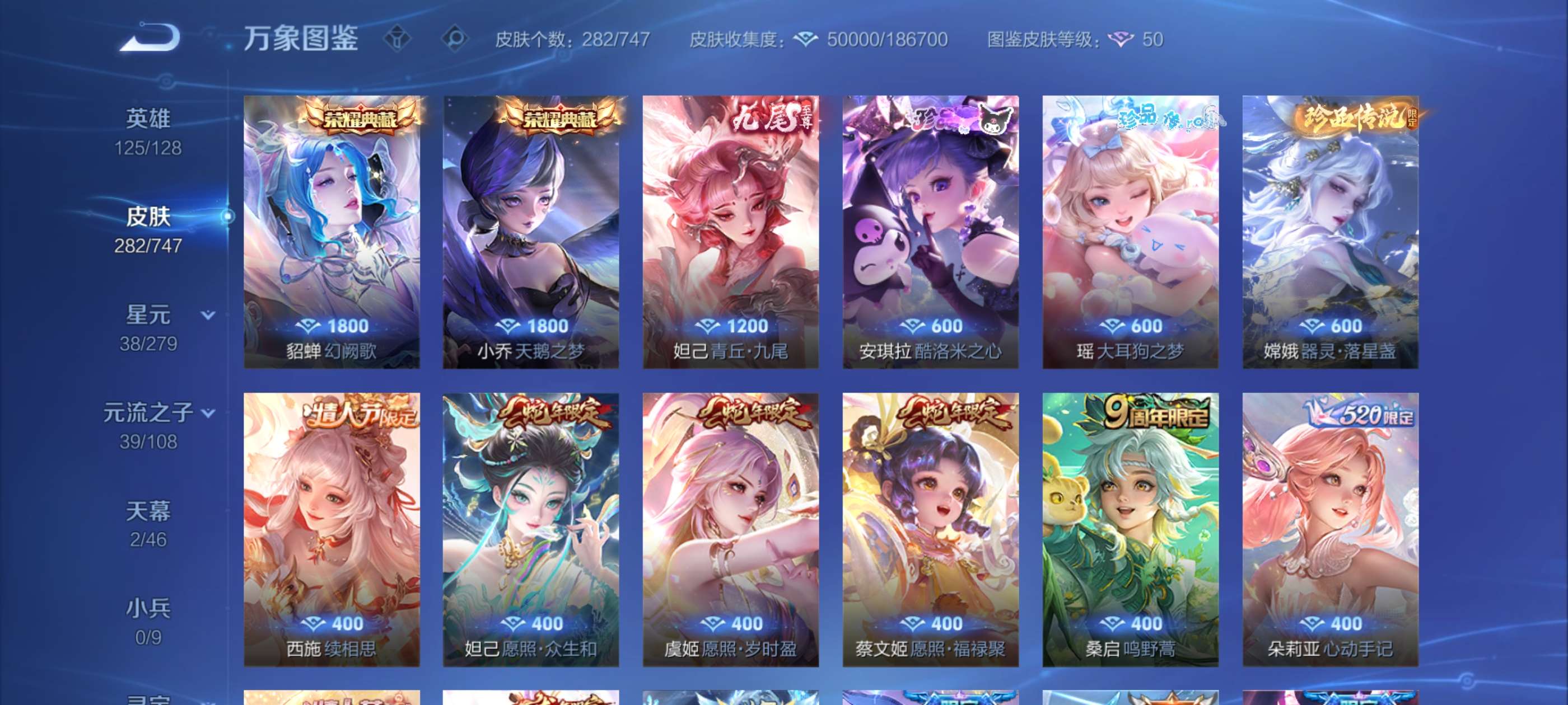 安卓QQ-2典藏-30传说-1无双-282皮肤-128英雄-荣耀王者-贵族9 金标西施 13个性按键 两个天幕