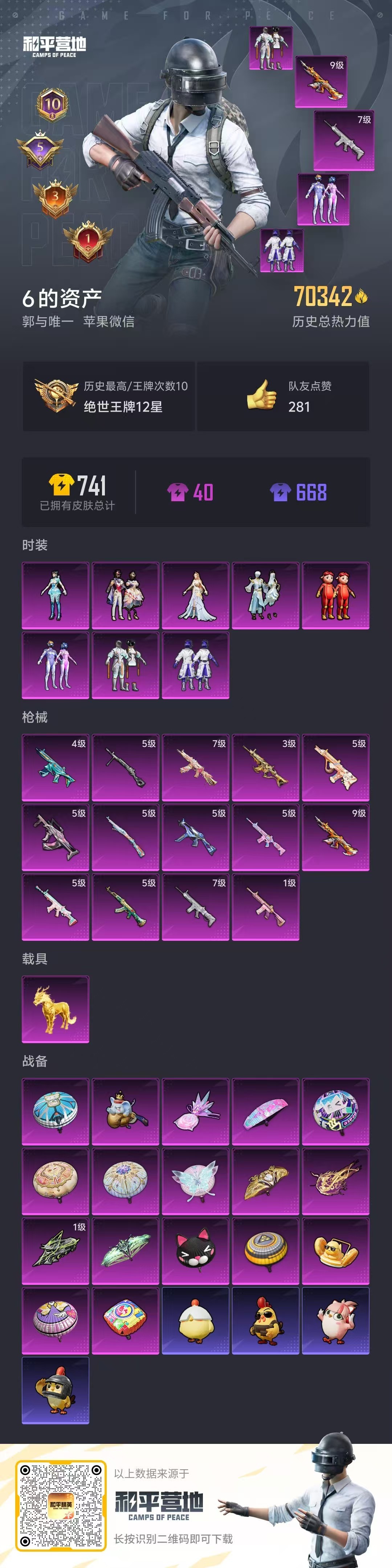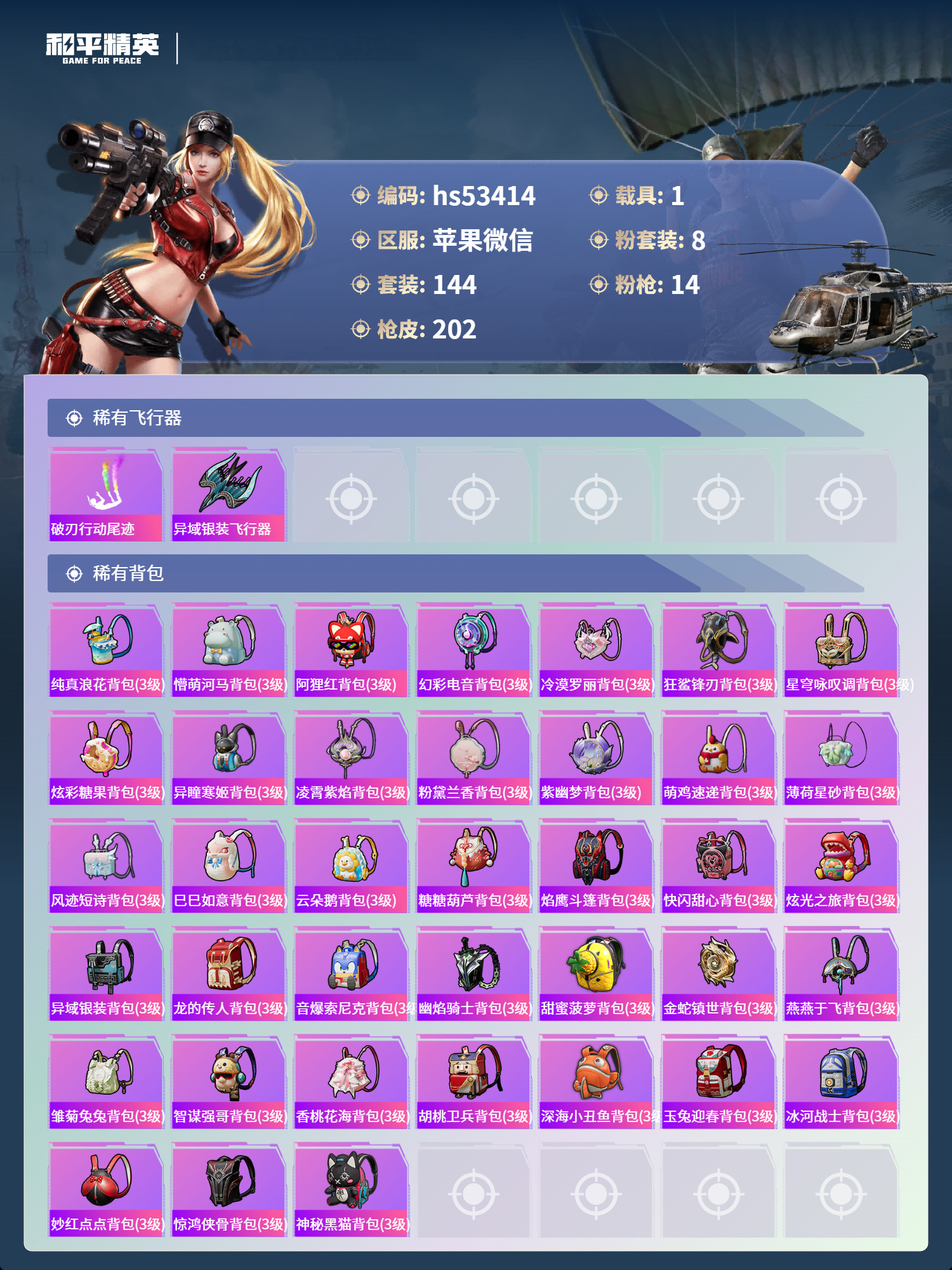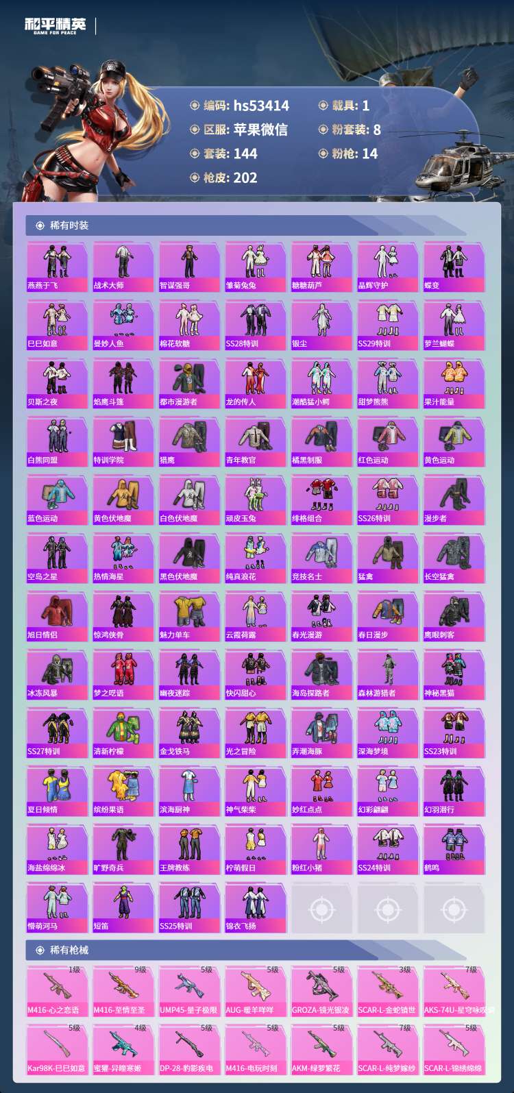 hs53414 苹果微-10王牌印记-8粉装-14特效枪-1载具-70342热力值-144套装-2