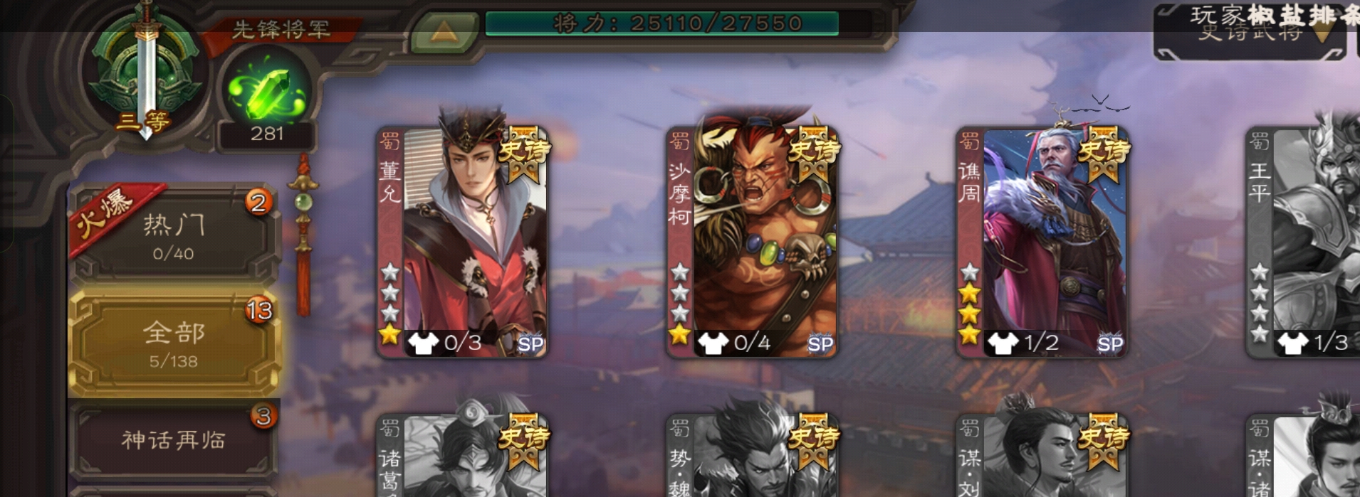 史诗武将数量: