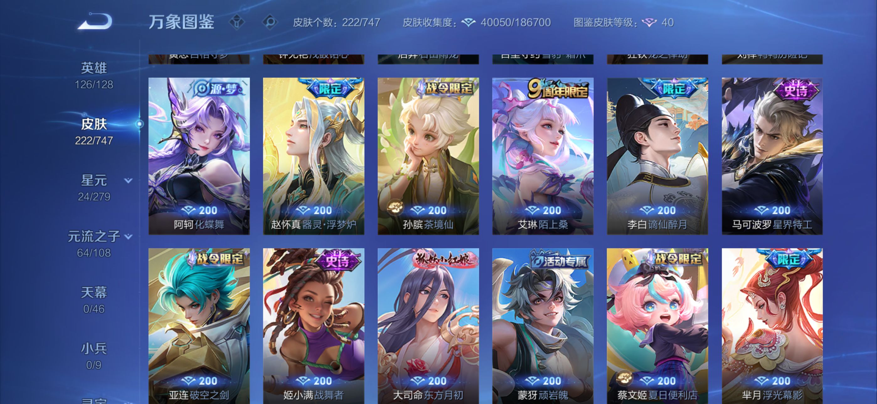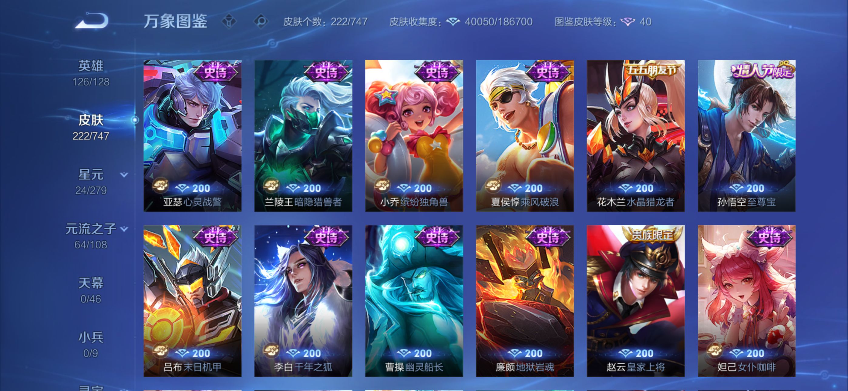苹果QQ-2典藏-22传说-1无双-222皮肤-126英雄-荣耀王者-69个史诗仓库,还多一个荣耀水晶。