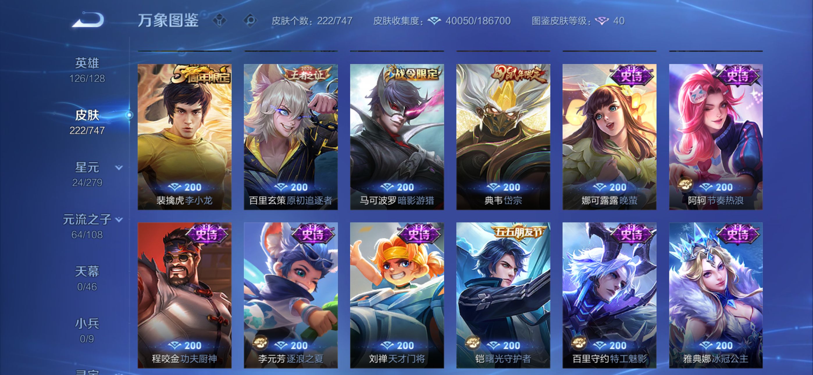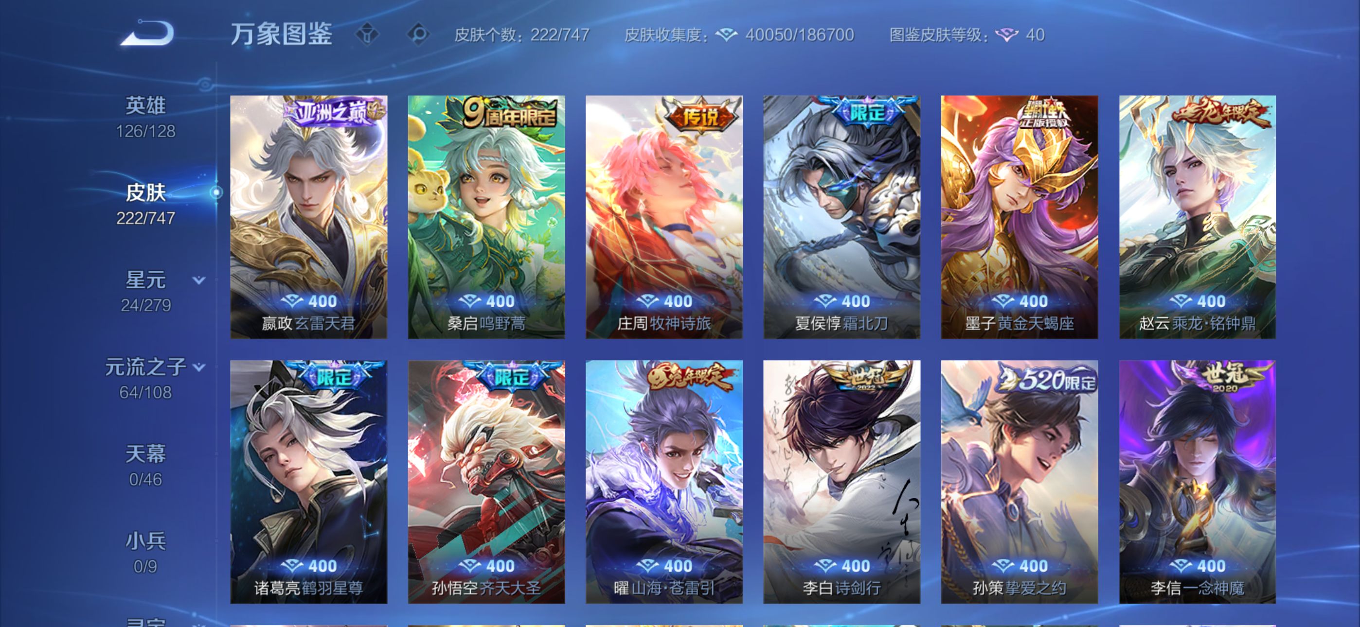 75星。一个无双,两个典藏,两个珍品传说,22个传说皮肤。
