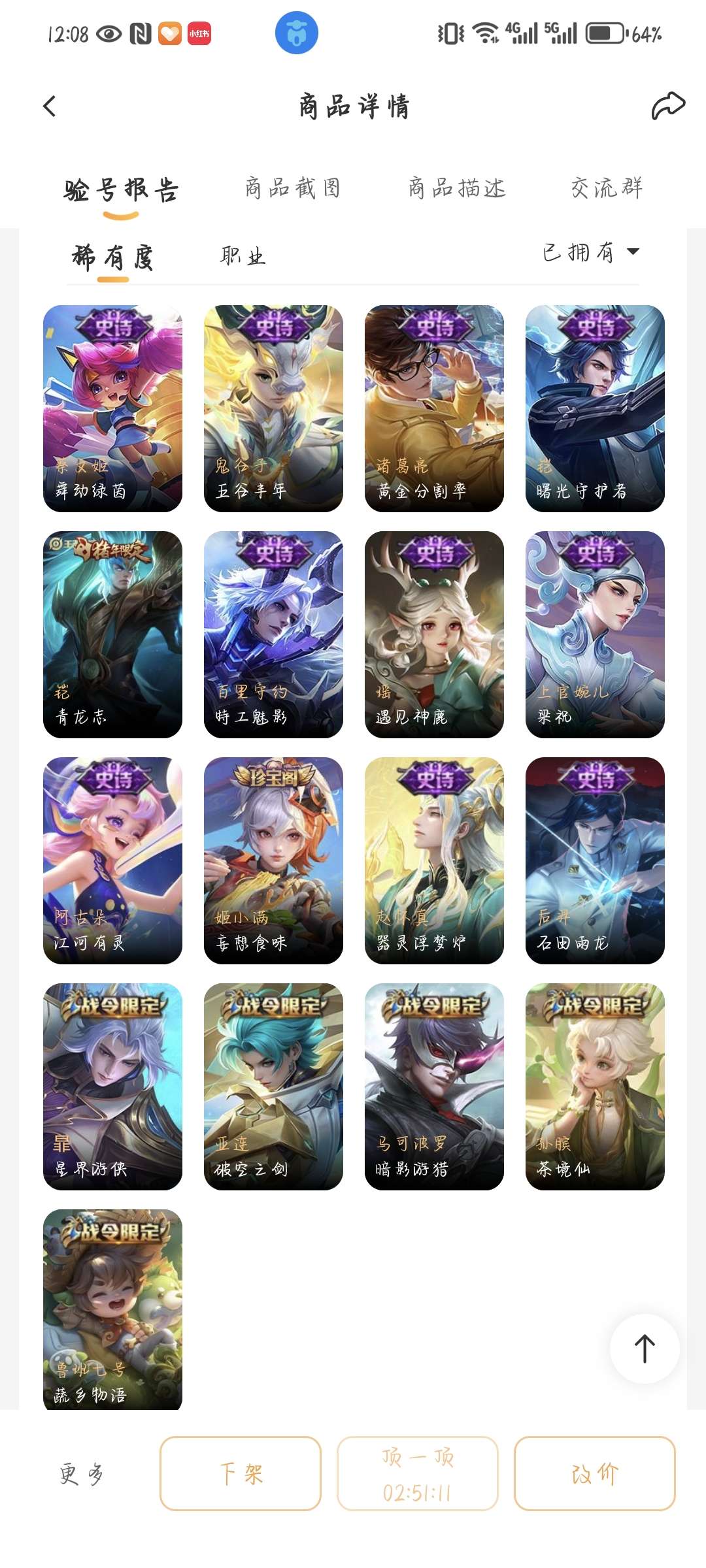 安卓QQ-2典藏-13传说-192皮肤-125英雄-无双王者-两典藏13传说53史诗