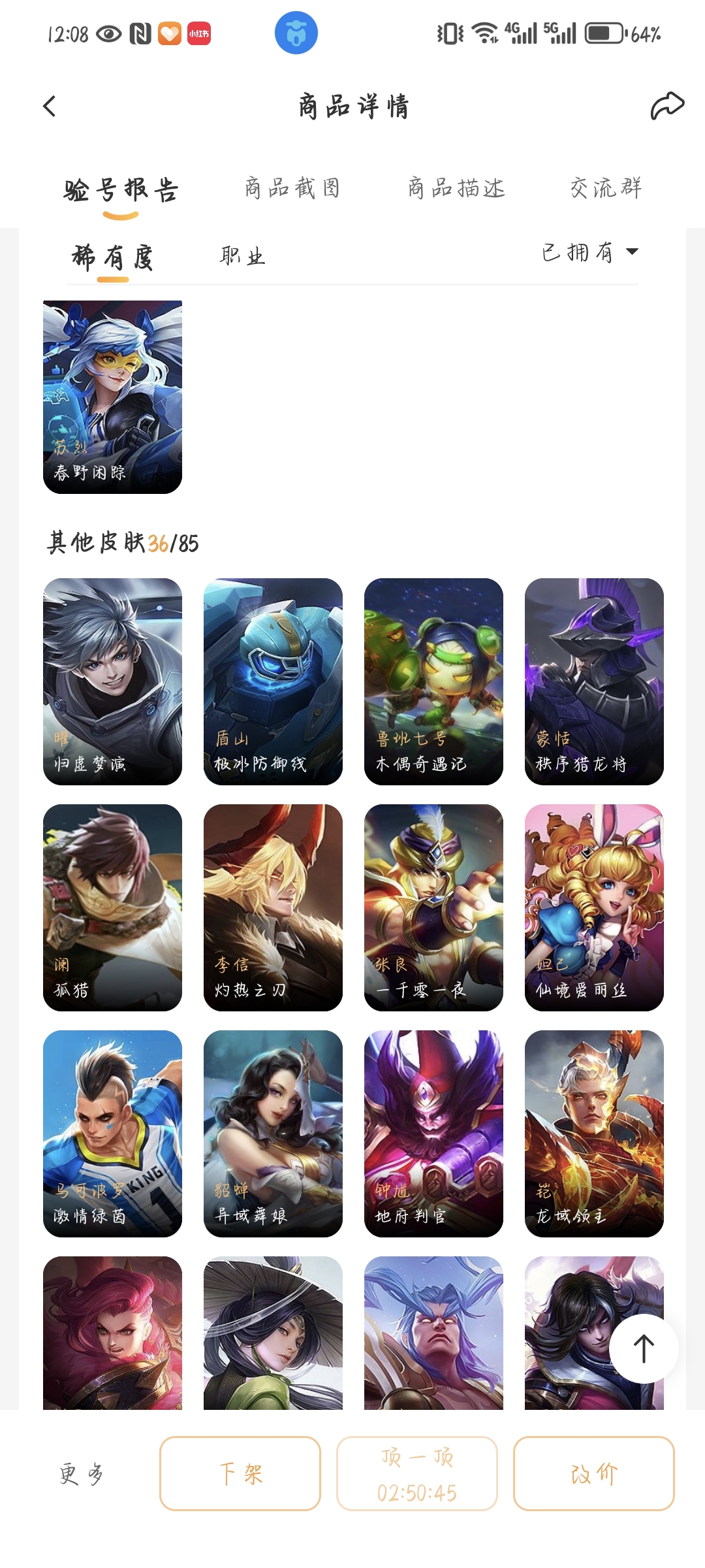 通过App,与卖家商议价格及保险,并向卖家索要账号最新截图,确认后下单购买。