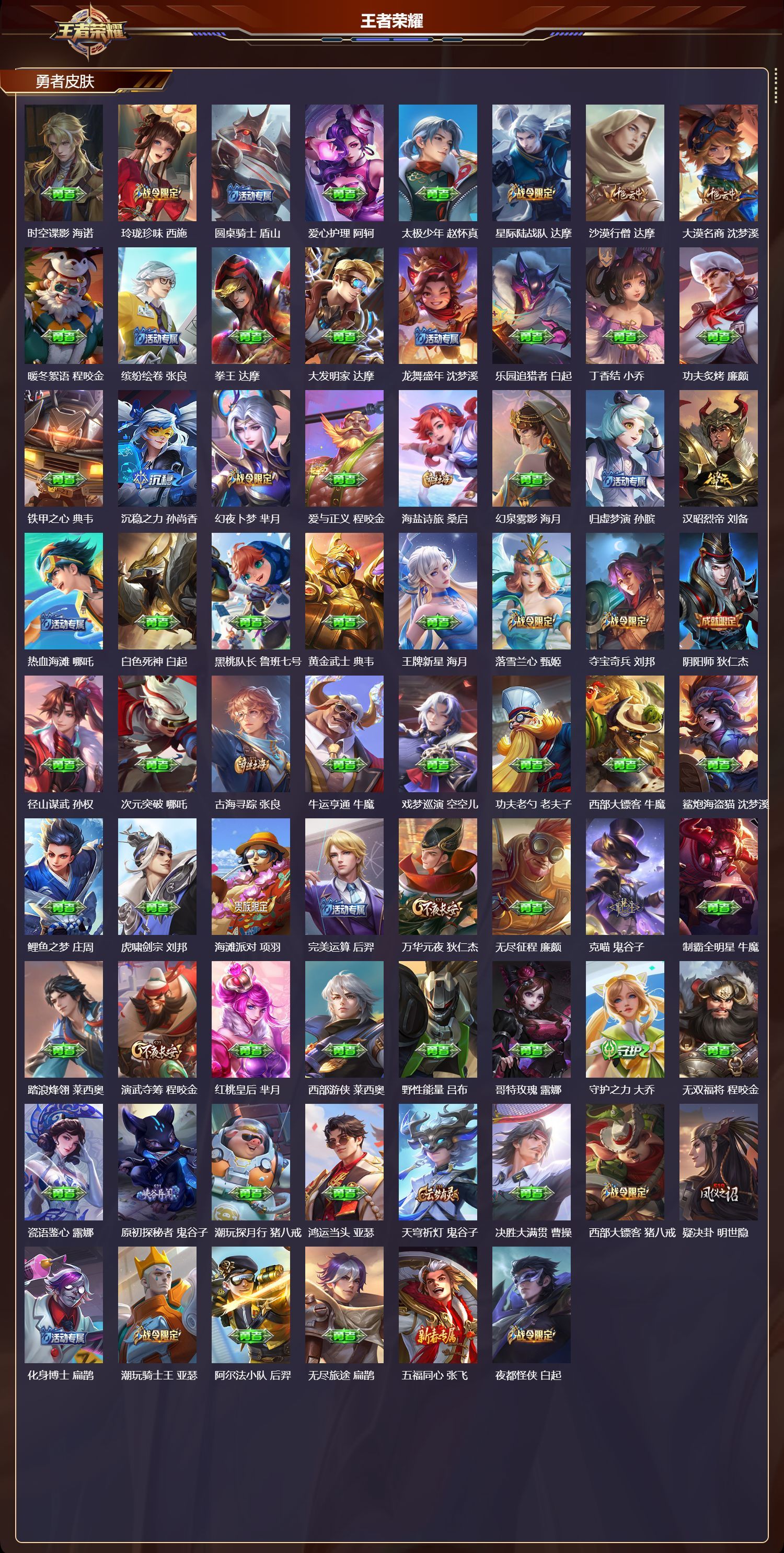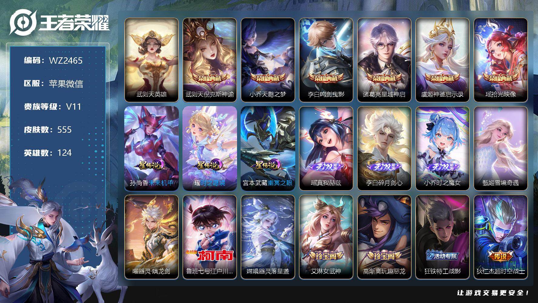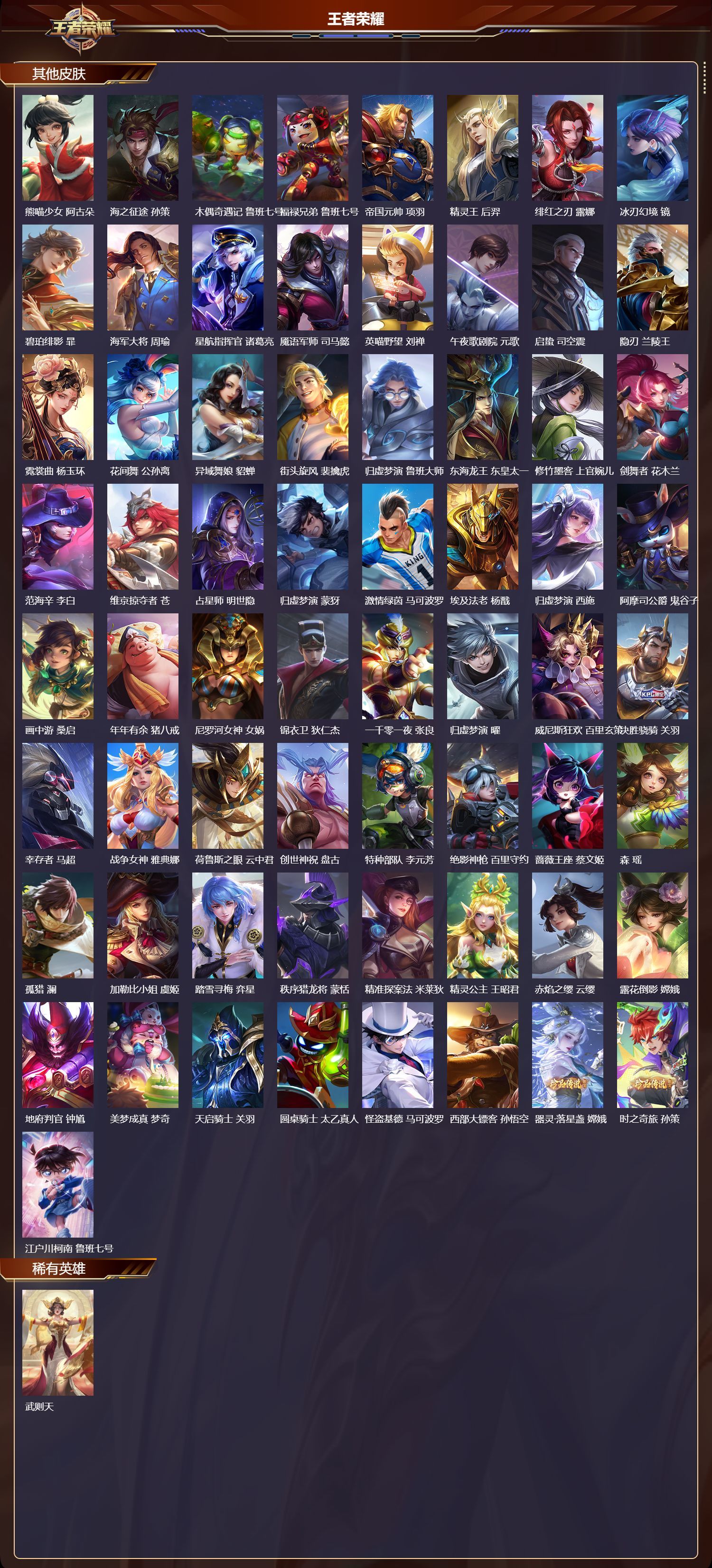 苹果QQ/荣耀王者/619皮肤/128英雄/15典藏/0珍品无双/9无双/4珍品传说/114传说/2