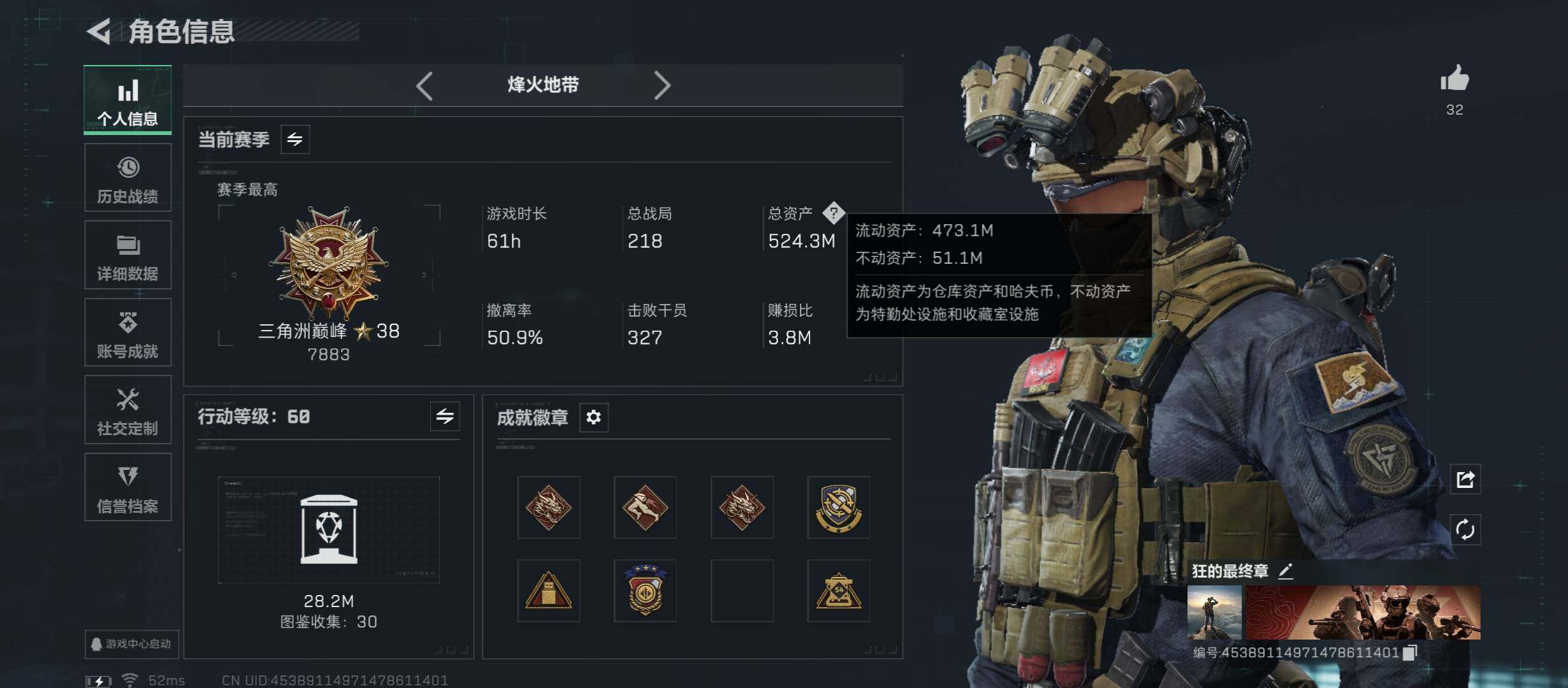【Q区三端互通】【可二次】YXz4930-特勤处:仓库9级/靶场7级/训练中心7级-总资产524.3m-哈夫币297m-烽火等级:60级