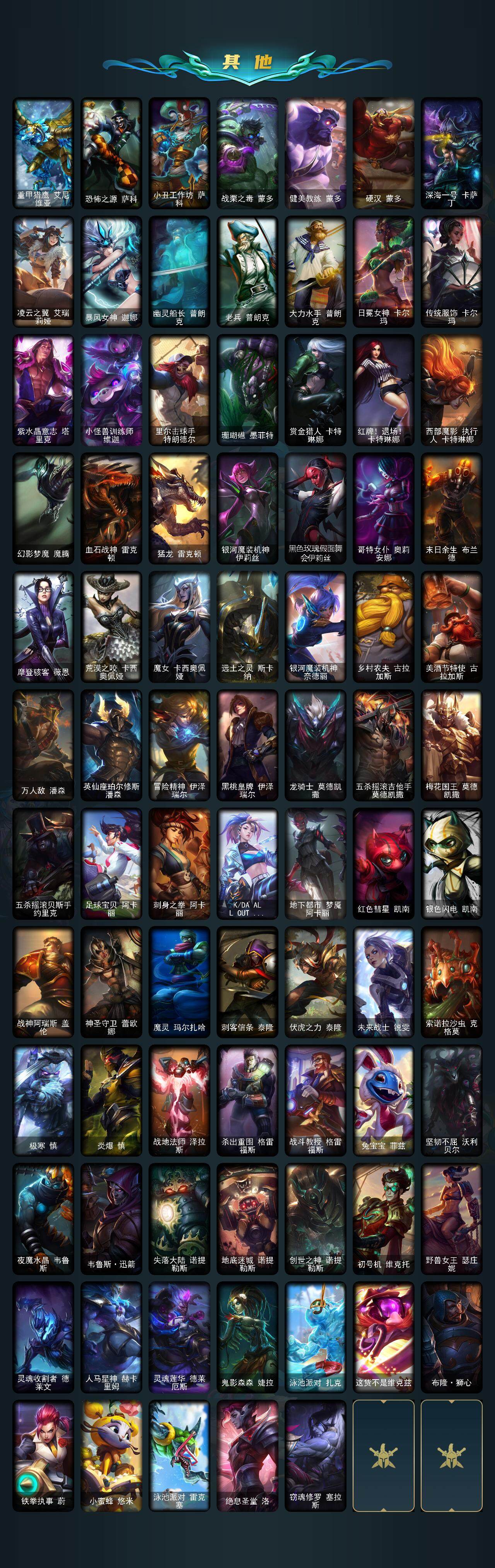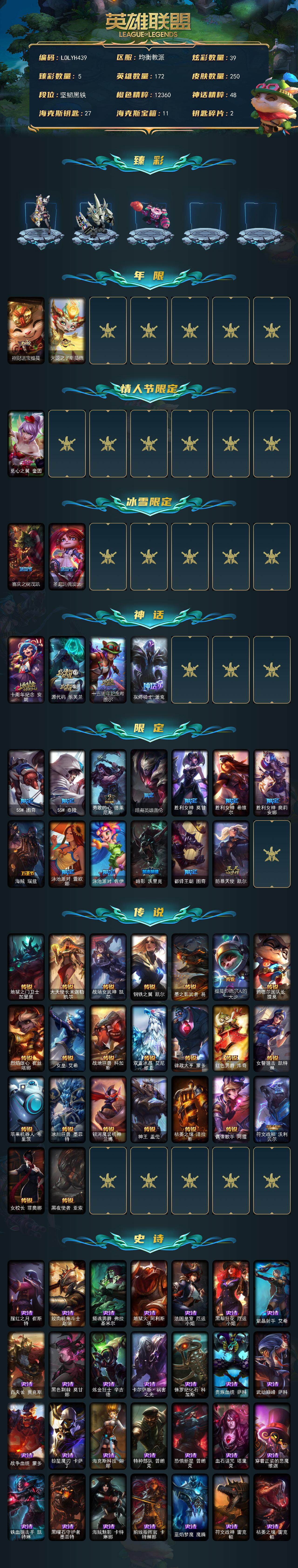 172英雄/250皮肤/4神话/18限定/5臻彩/39炫彩