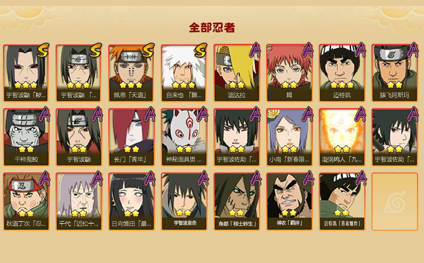 【HYYH773】V7/S忍4/A忍19/舞之豪杰-自来也/宇智波鼬/秽土转生-宇智波鼬/青年-长门/新春限定-小南/蝎/最终章-日向雏田/天道-佩恩/2星神农「羁绊」/猿飞阿斯玛/万花筒写轮眼-宇智波佐助/2星宇智波泉奈/忍界大战-秋道丁次/迪达拉/2星角都「秽土转生」/干柿鬼鲛/3星迈特凯/九尾查克拉-漩涡鸣人/2星迈特凯「青春爆炸」/须佐能乎-宇智波佐助/忍者之路-神秘面具男/近松十人卫-千代/须佐能乎-宇智波鼬