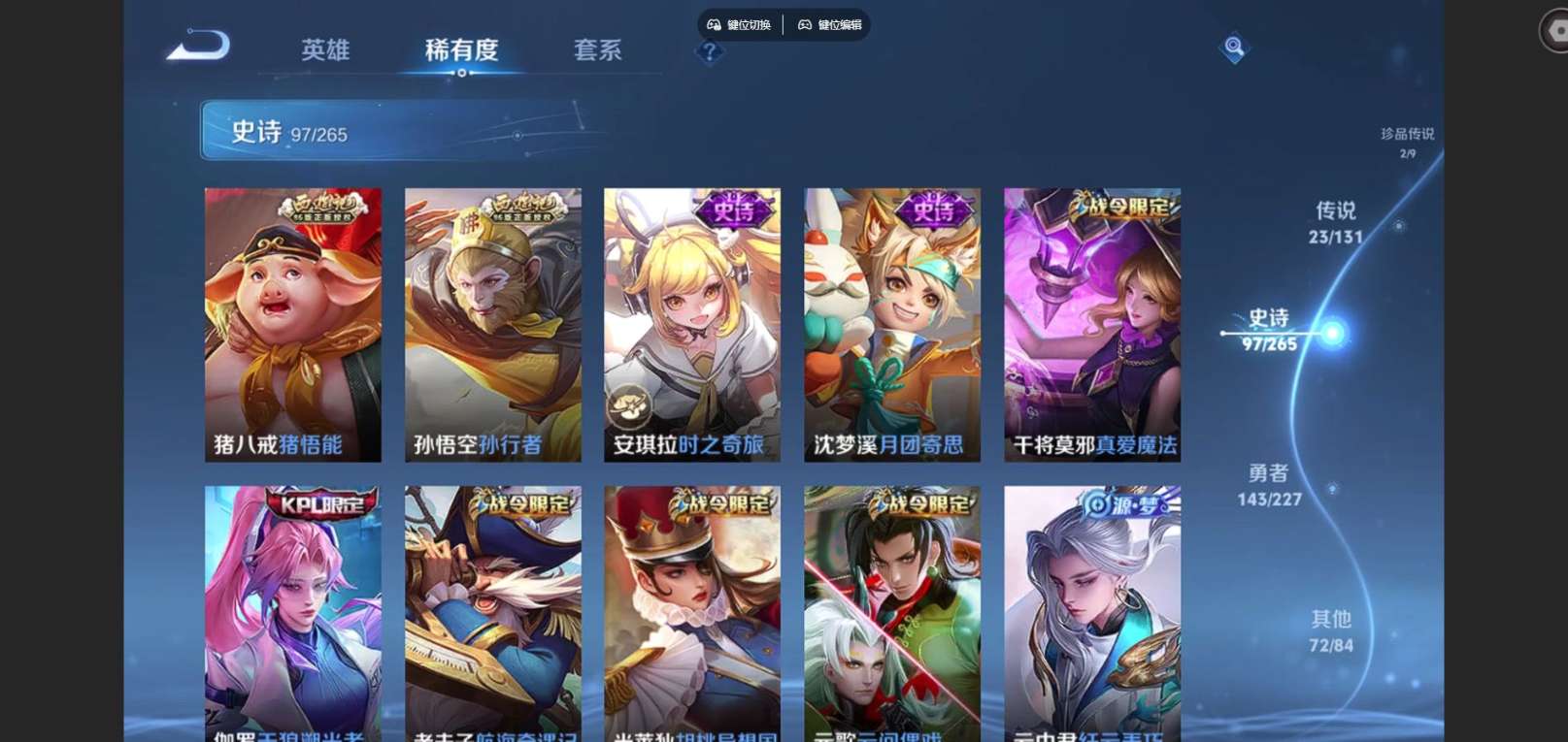 124英雄-340皮肤--V8-340皮肤2典藏1无双2珍品传说23传说 金标刘备 3星传说 时之思