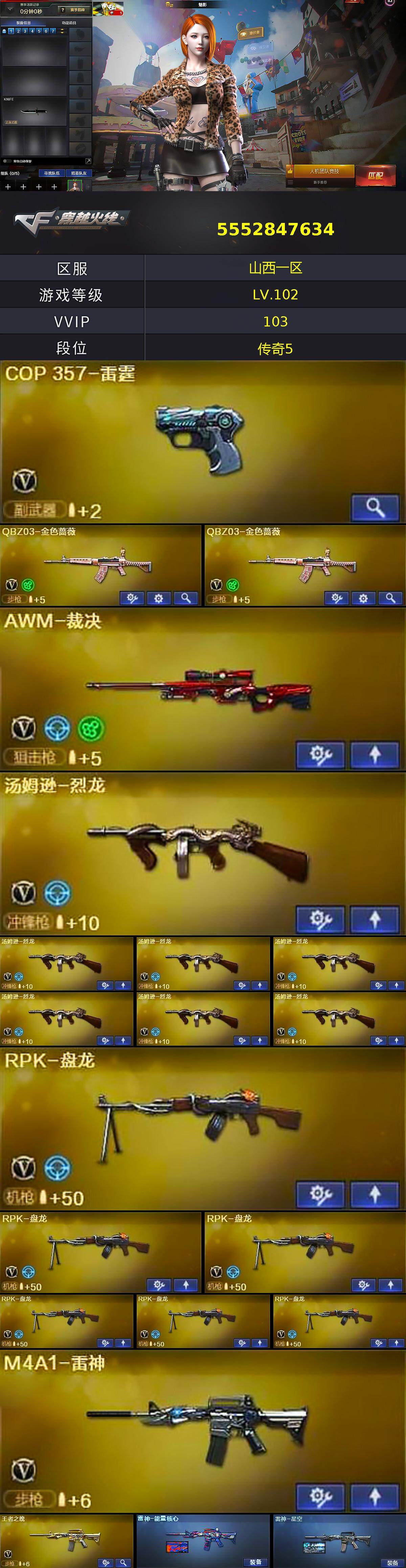 山西一区-101V-5王者-5炫金【热门武器】:QBZ03-金色蔷薇*2,死