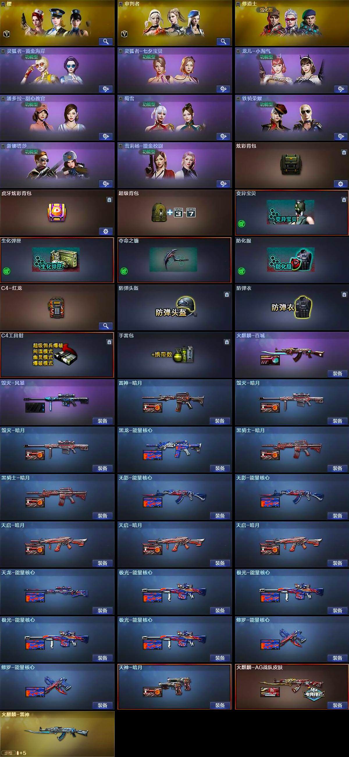 【皮肤】:雷神-暗月,火麒麟-AG战队皮肤,火麒麟-雷神,火麒麟-百城,毁灭-暗月*2,毁灭-风暴,黑龙-能量核心,黑骑士-暗月*2,无影-能量核心*2,天启-暗月*3